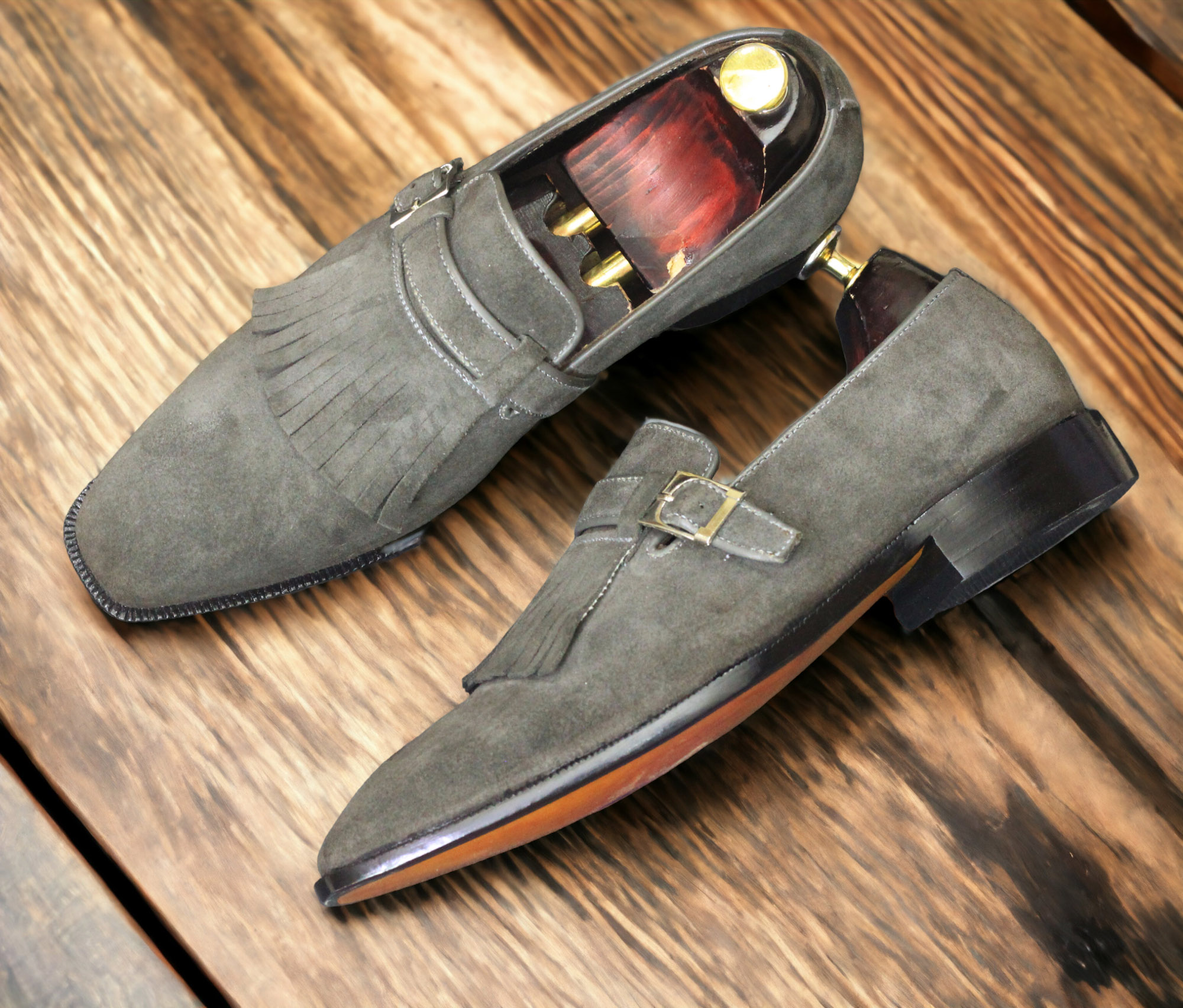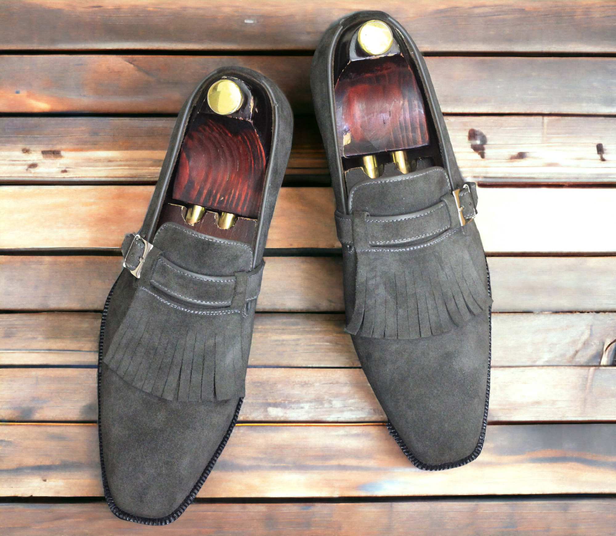 New Men's Stylish Fringe Buckle Suede Shoes, Handmade Party Wear Shoes