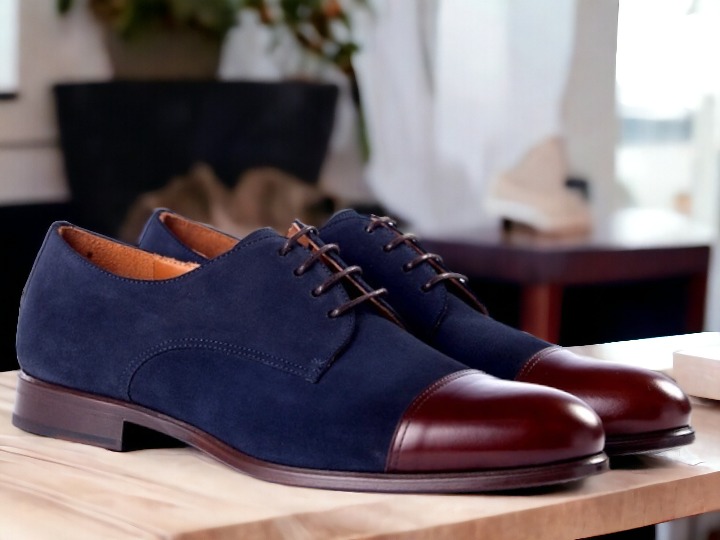 Handmade Men's Two tone Laceup Leather & Suede Derby Dress Shoes