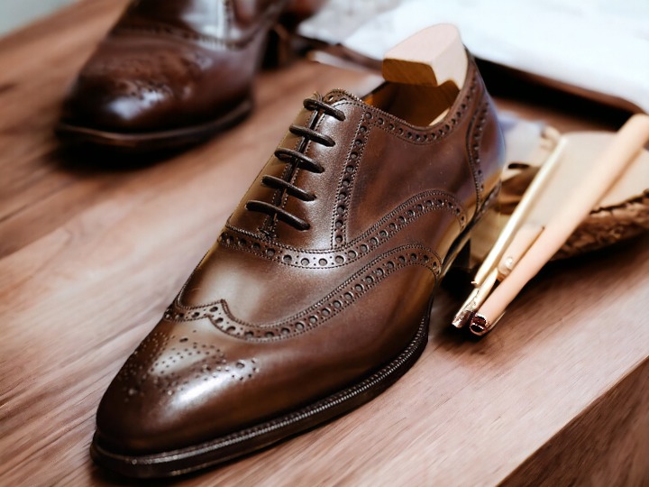 Handmade Brown Leather Lace up Wing Tip Office Shoes