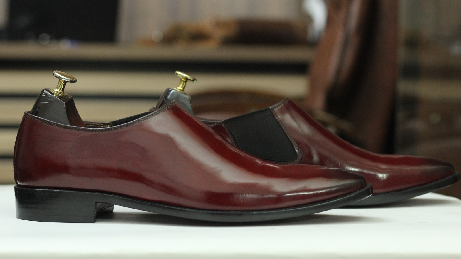 Handmade Men's Fashion Burgundy Leather Half Chelsea Dress Shoes