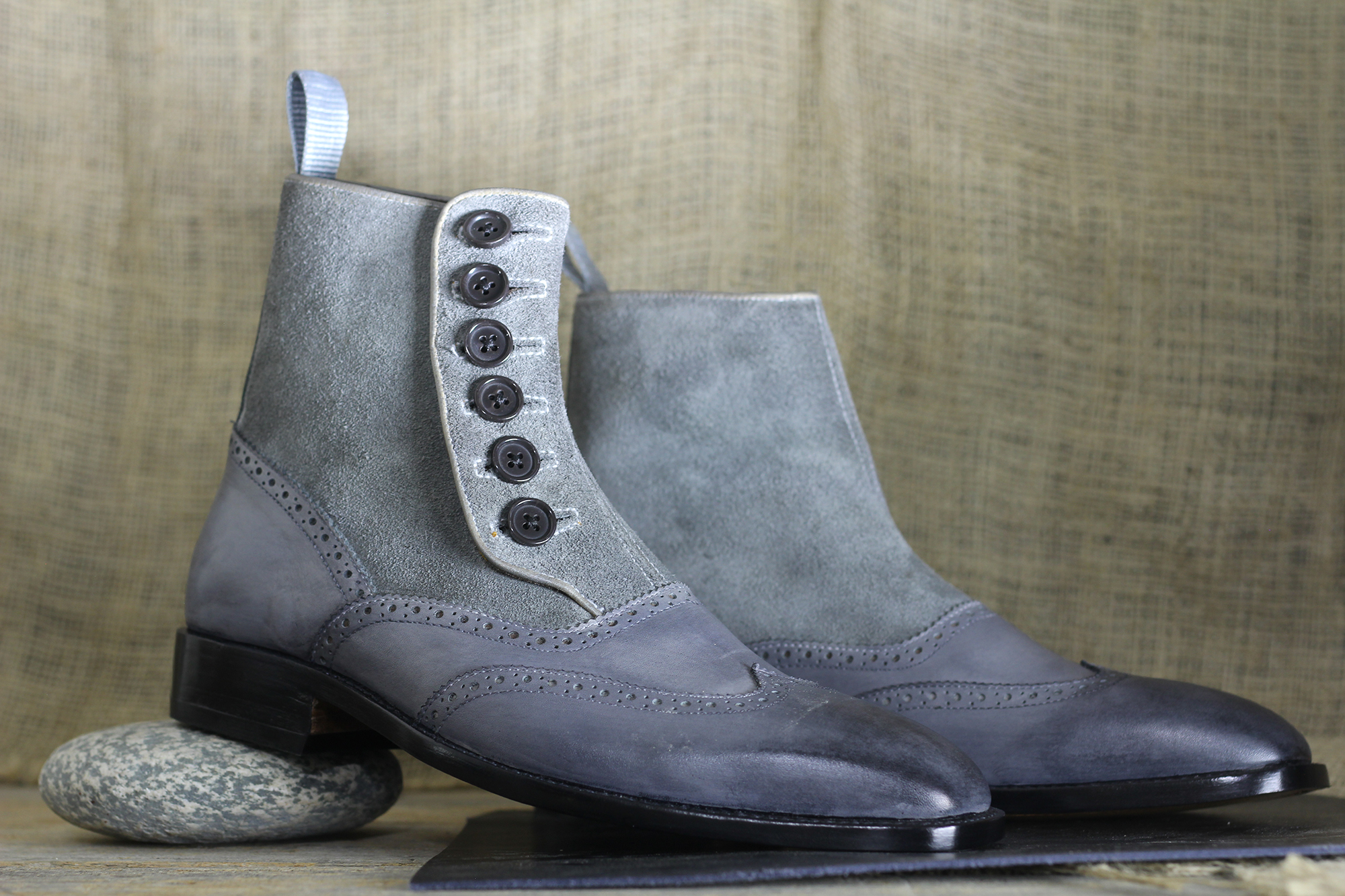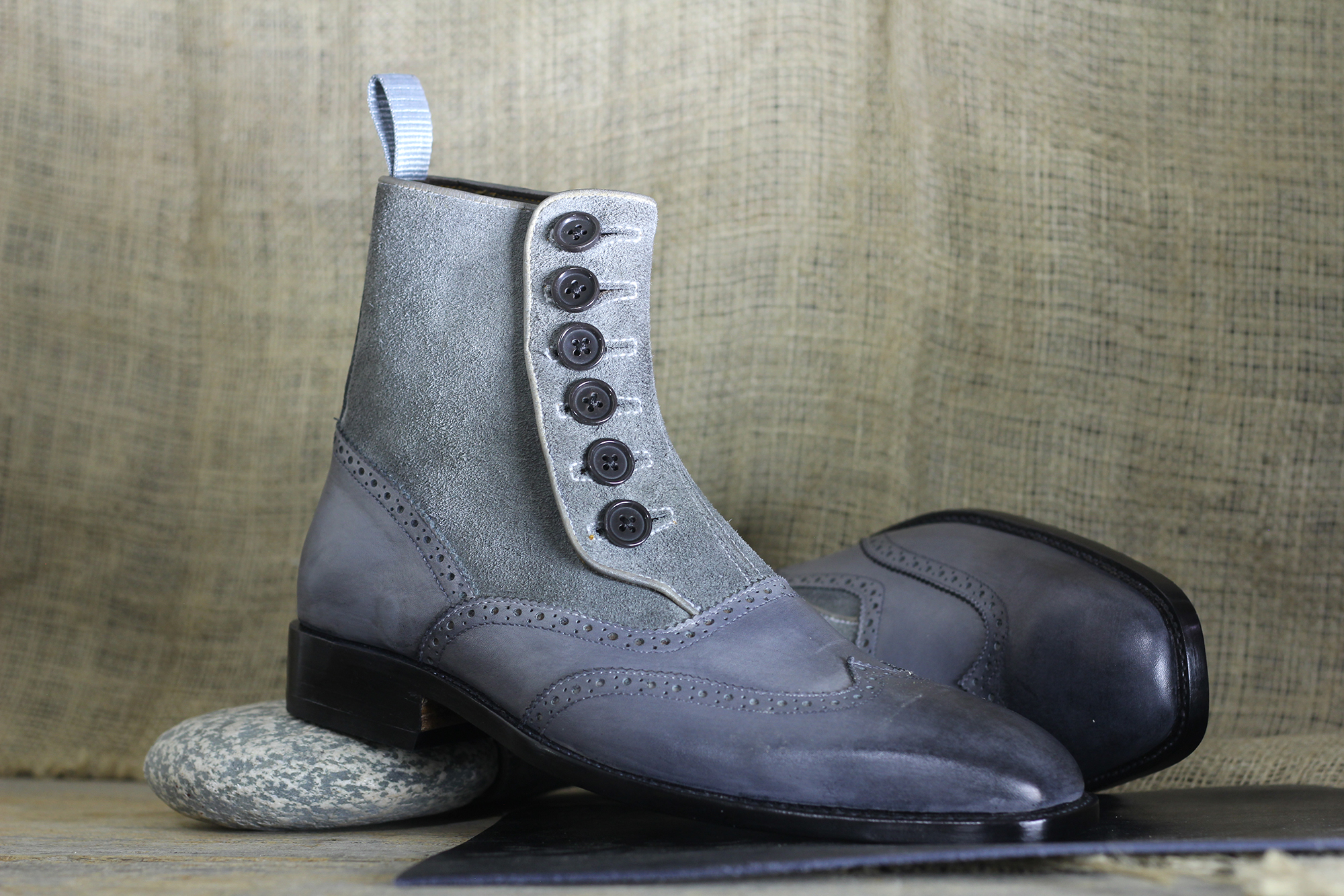 Ankle High Gray Button Top Leather Suede Oxford Men's Boot