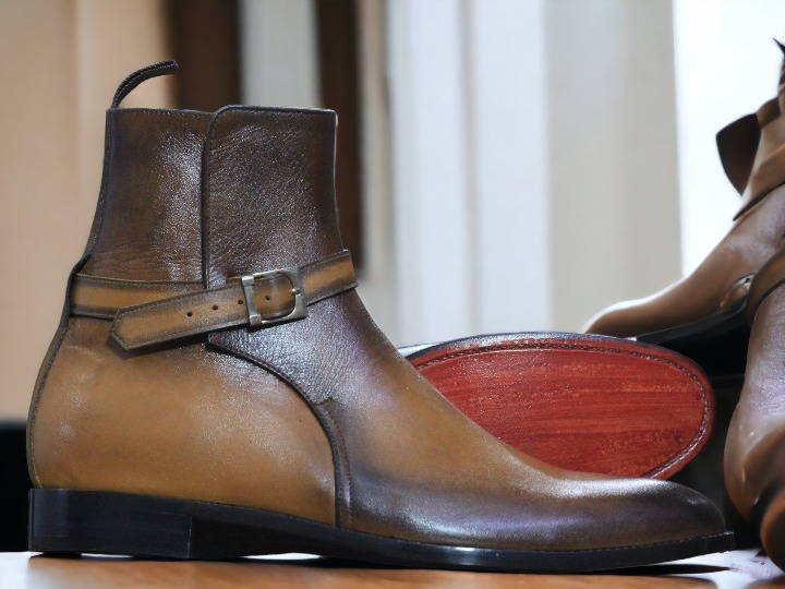 Men's Bespoke Jodhpurs Two Tone Brown Leather Ankle High Boot, Designer Boot