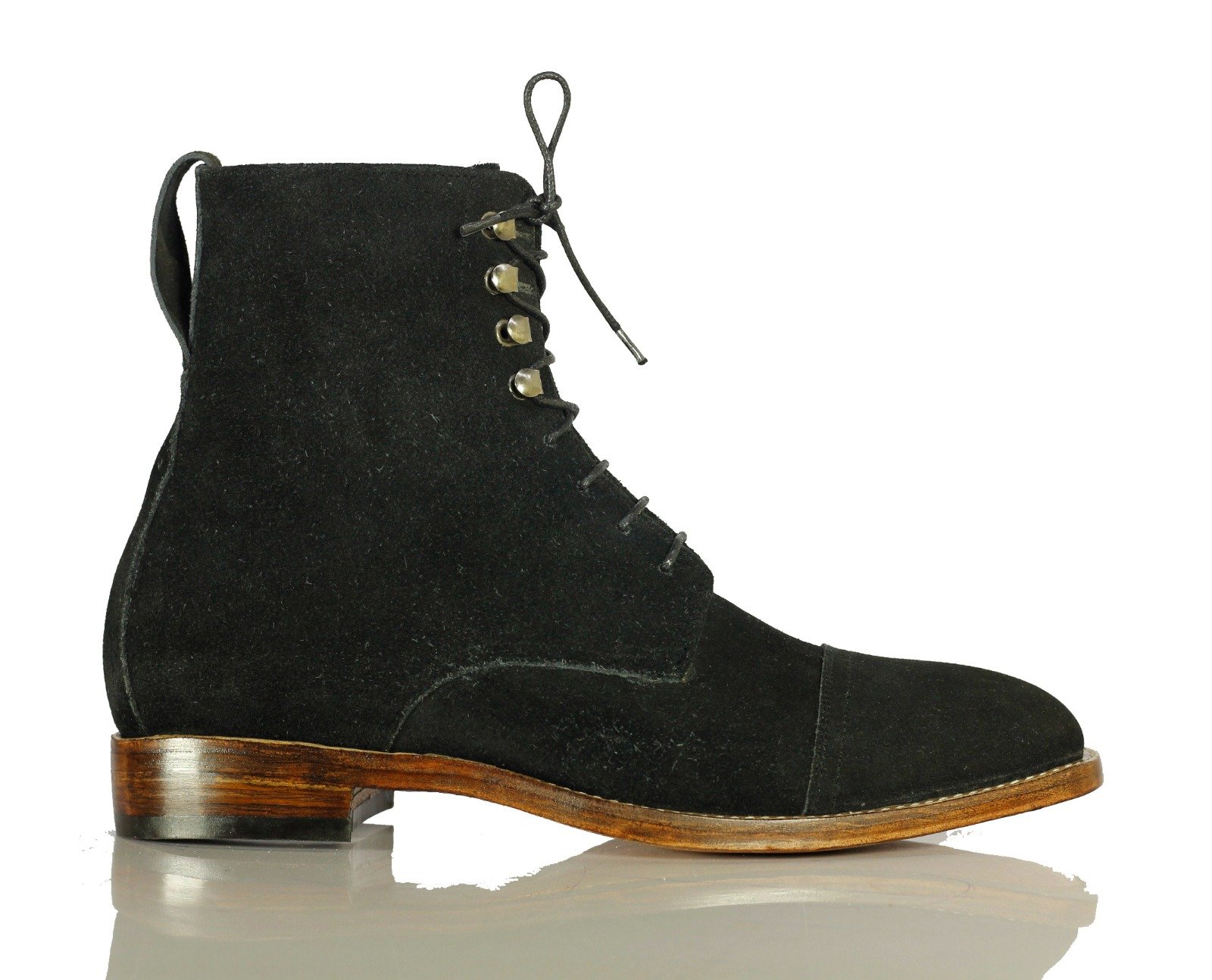 Fashion Men's Black Suede Lace Up Handmade Cap Toe Ankle Boots
