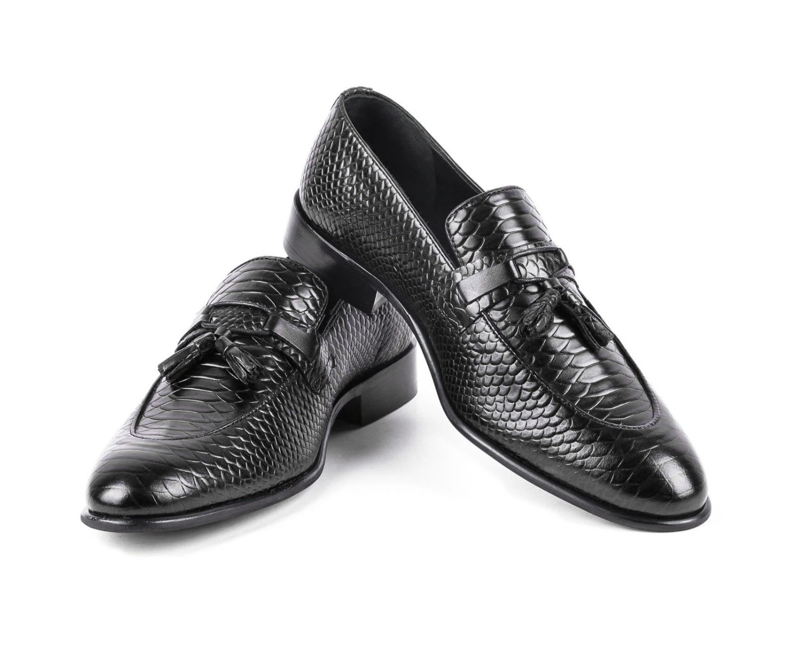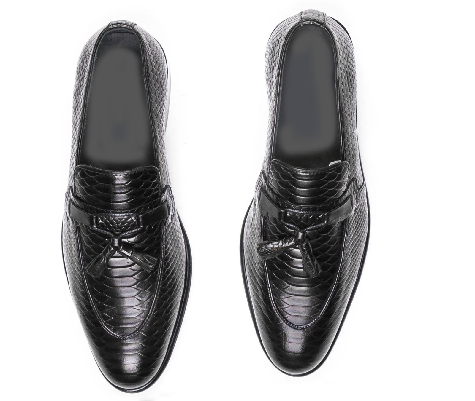 Handmade Python Leather Tussle Men's Fashion Black Dress Shoes