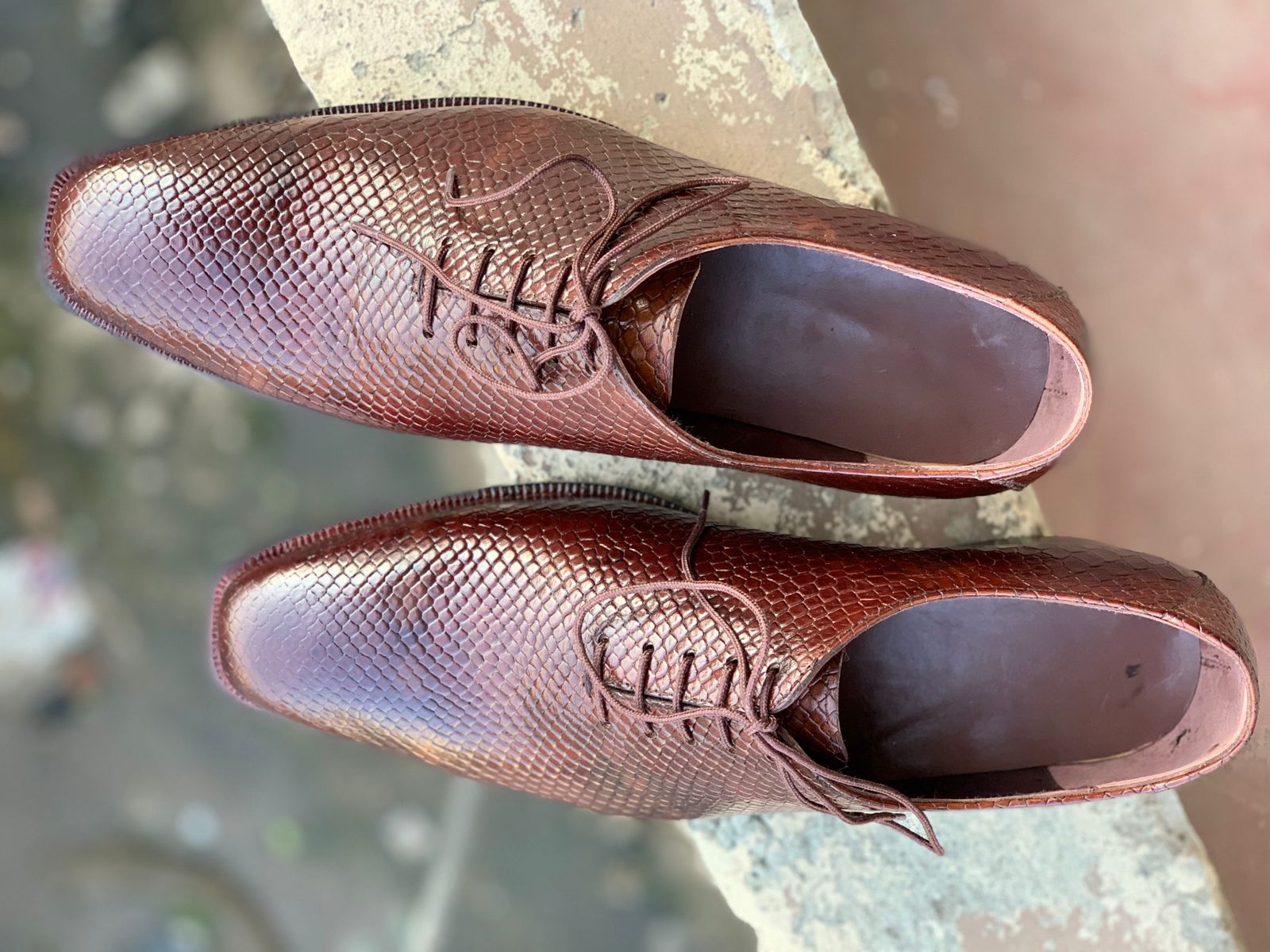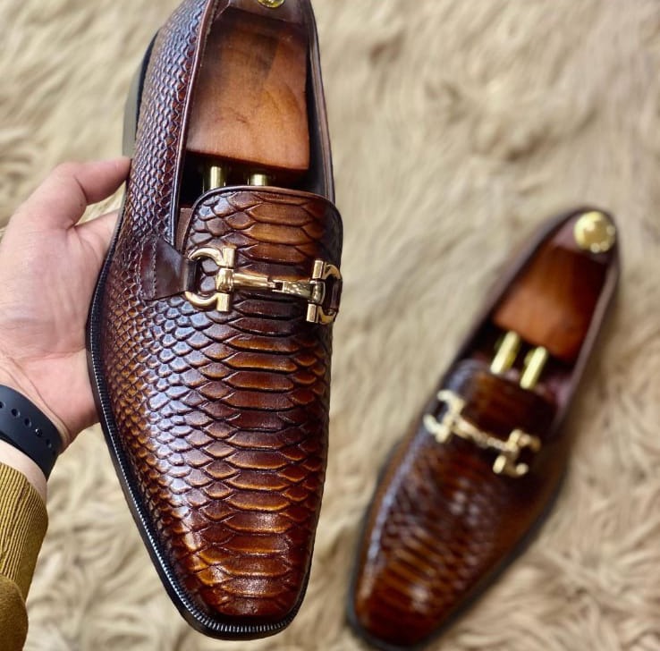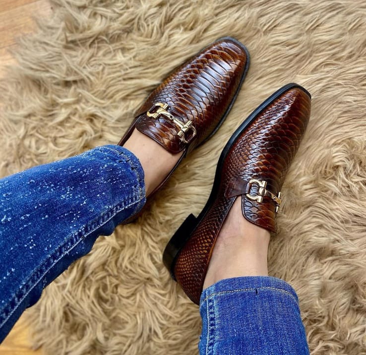 Hand Painted Python Skin Loafers Oxford Brown Moccasin Shoes Men's Leather Pull Up Shoes