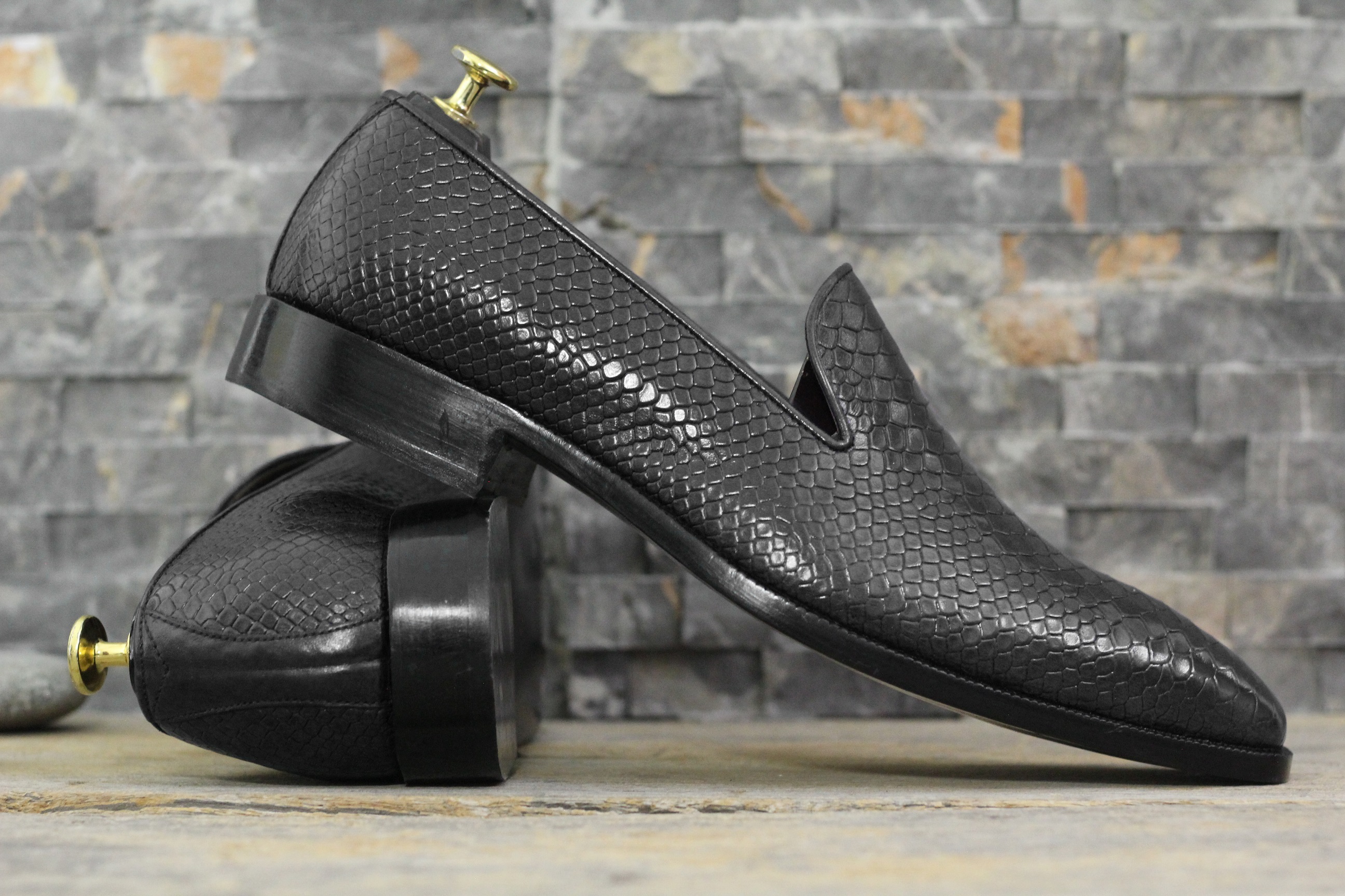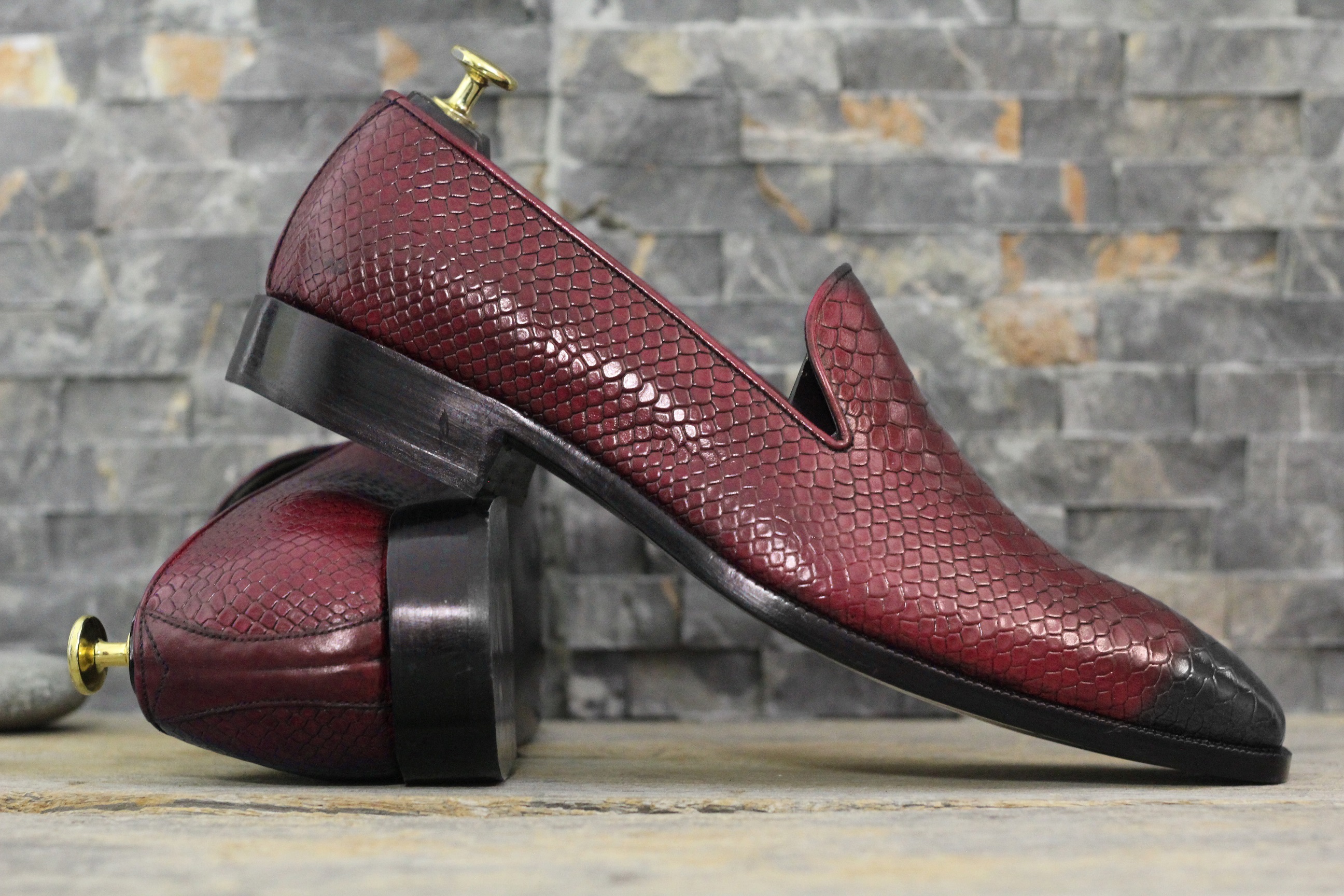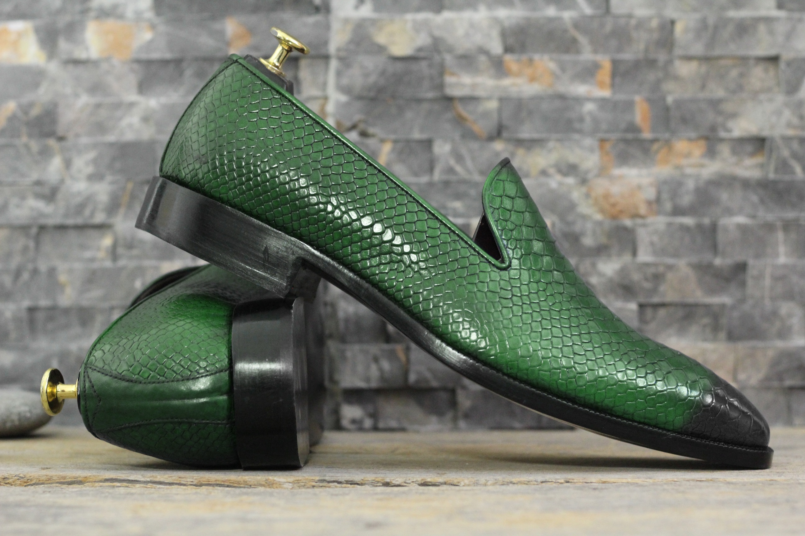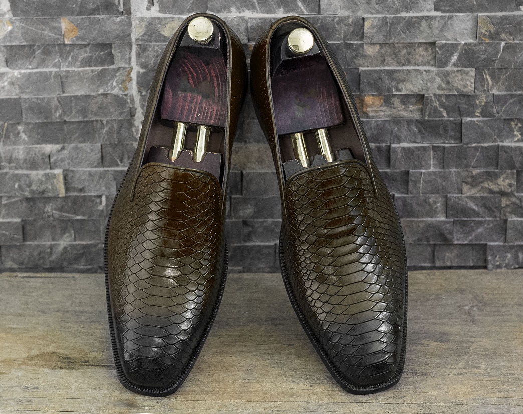 Hand Painted Python Skin Texture Leather Slip On Penny Loafer Shoes