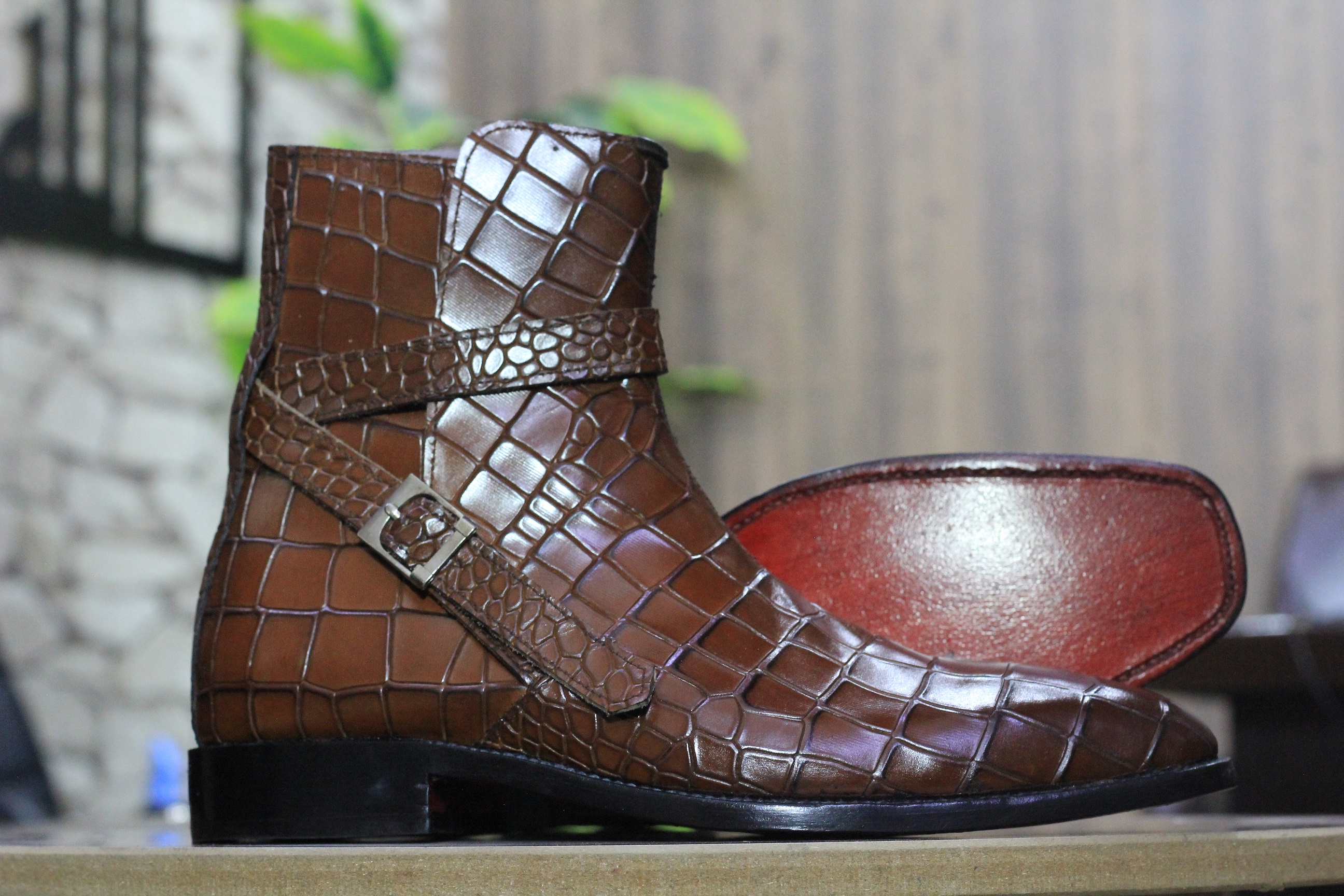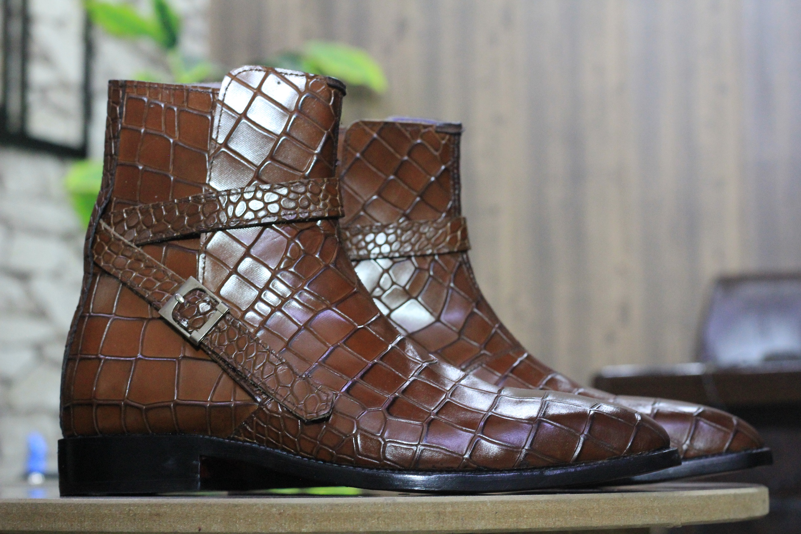 Men's Brown Alligator Jodhpurs Boot, Handmade Ankle High New Classic Boot