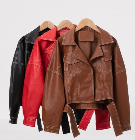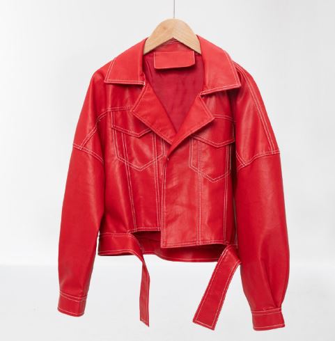 Red Leather Street Style Women Leather Jacket with Cargo Pockets, Biker Leather Fashion Jacket