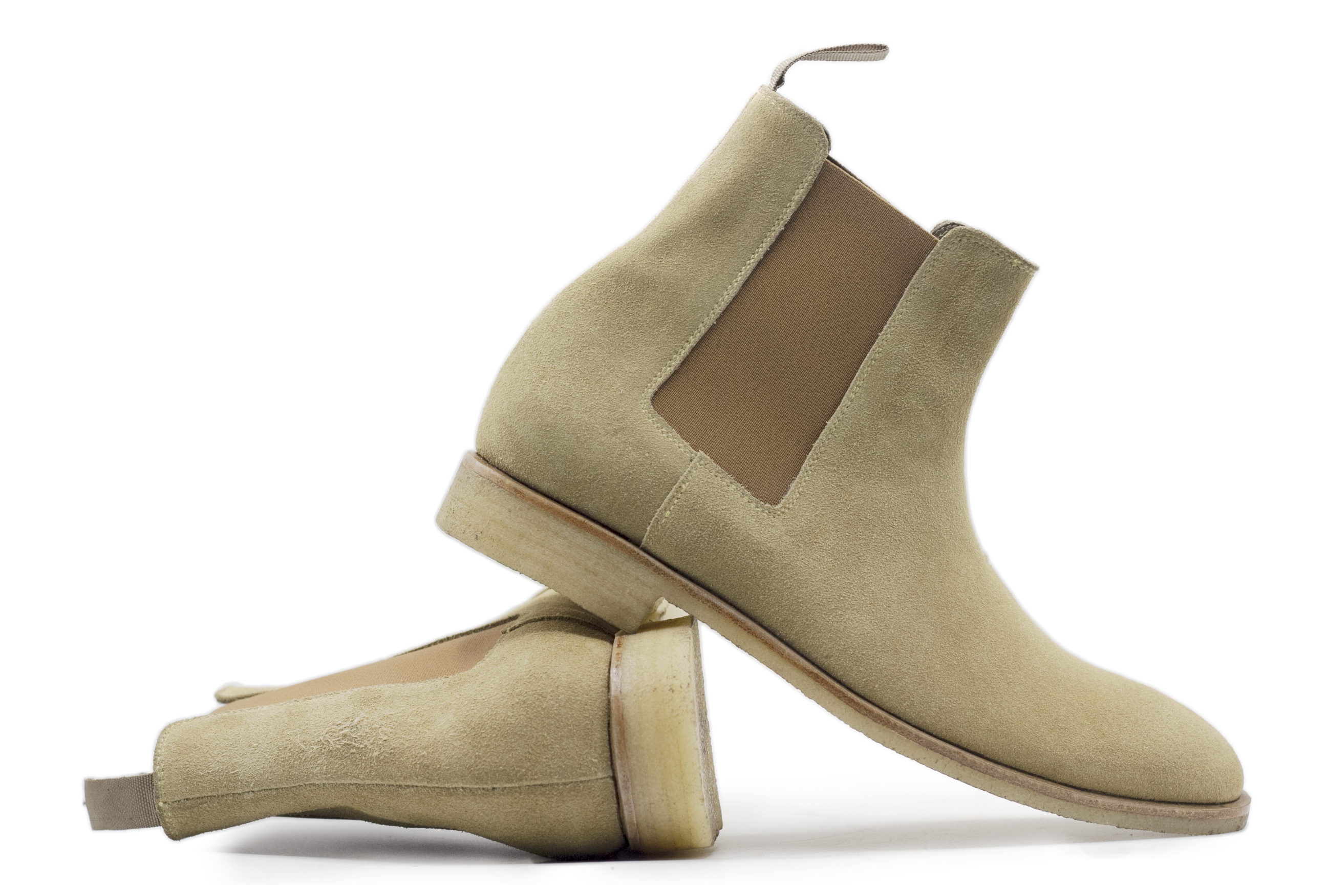 Beige Ankle High Leather Suede Chelsea Boots For Men's