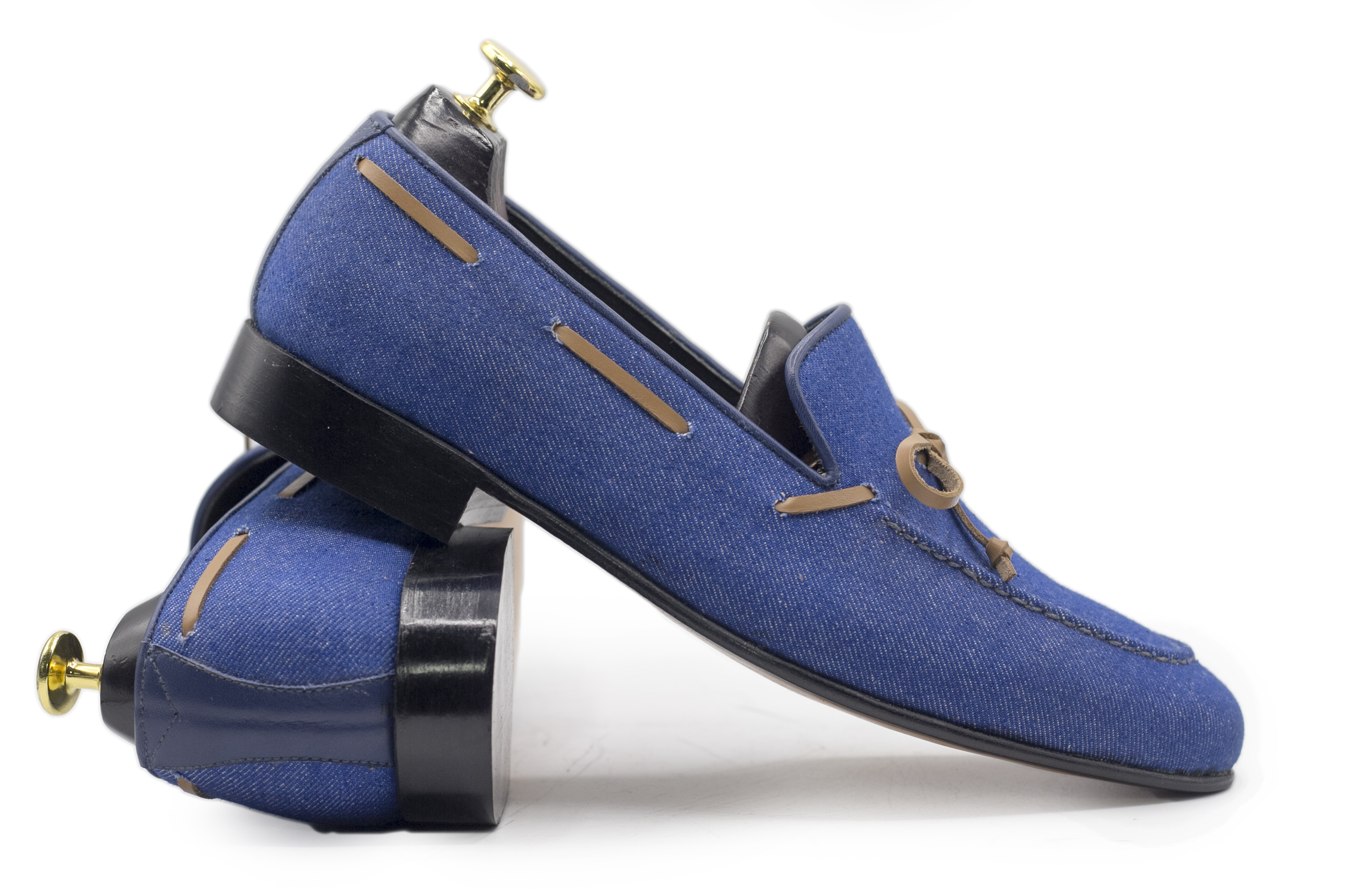 Handmade Blue Denim Round Toe Penny Tasseled Loafers Shoes
