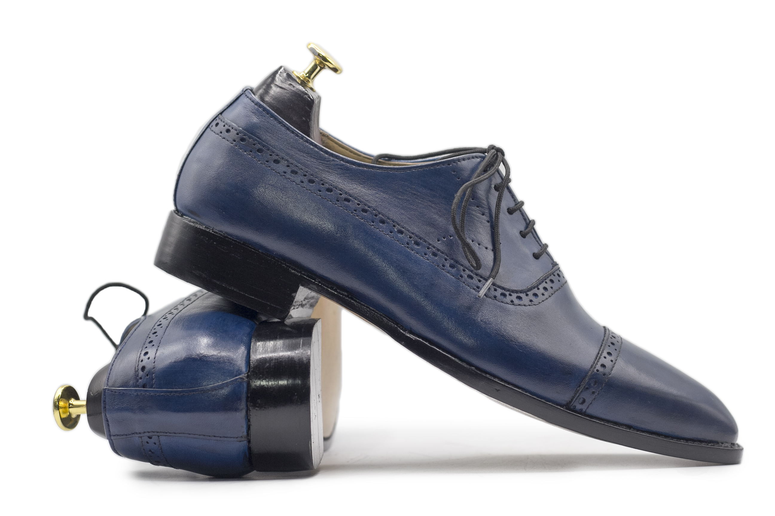 Handmade Cap Toe Blue Lace Up Brogue Leather Men's Shoes