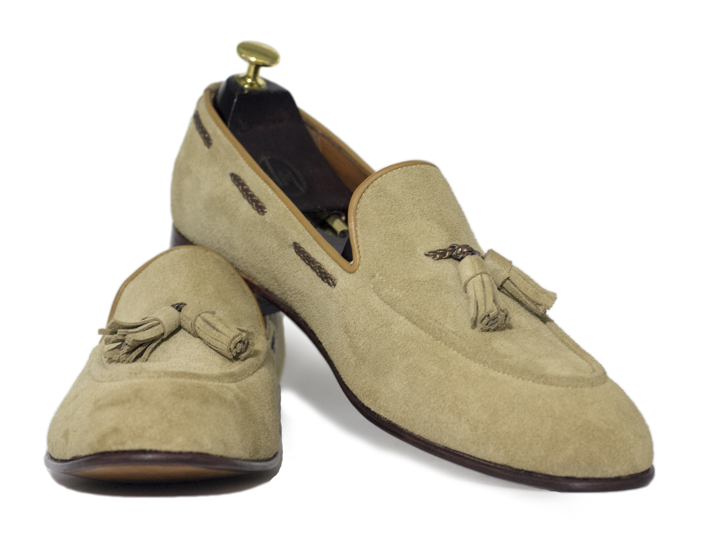 Men's Round Toe Beige Tasseled Slip On Leather Suede Loafer Shoes