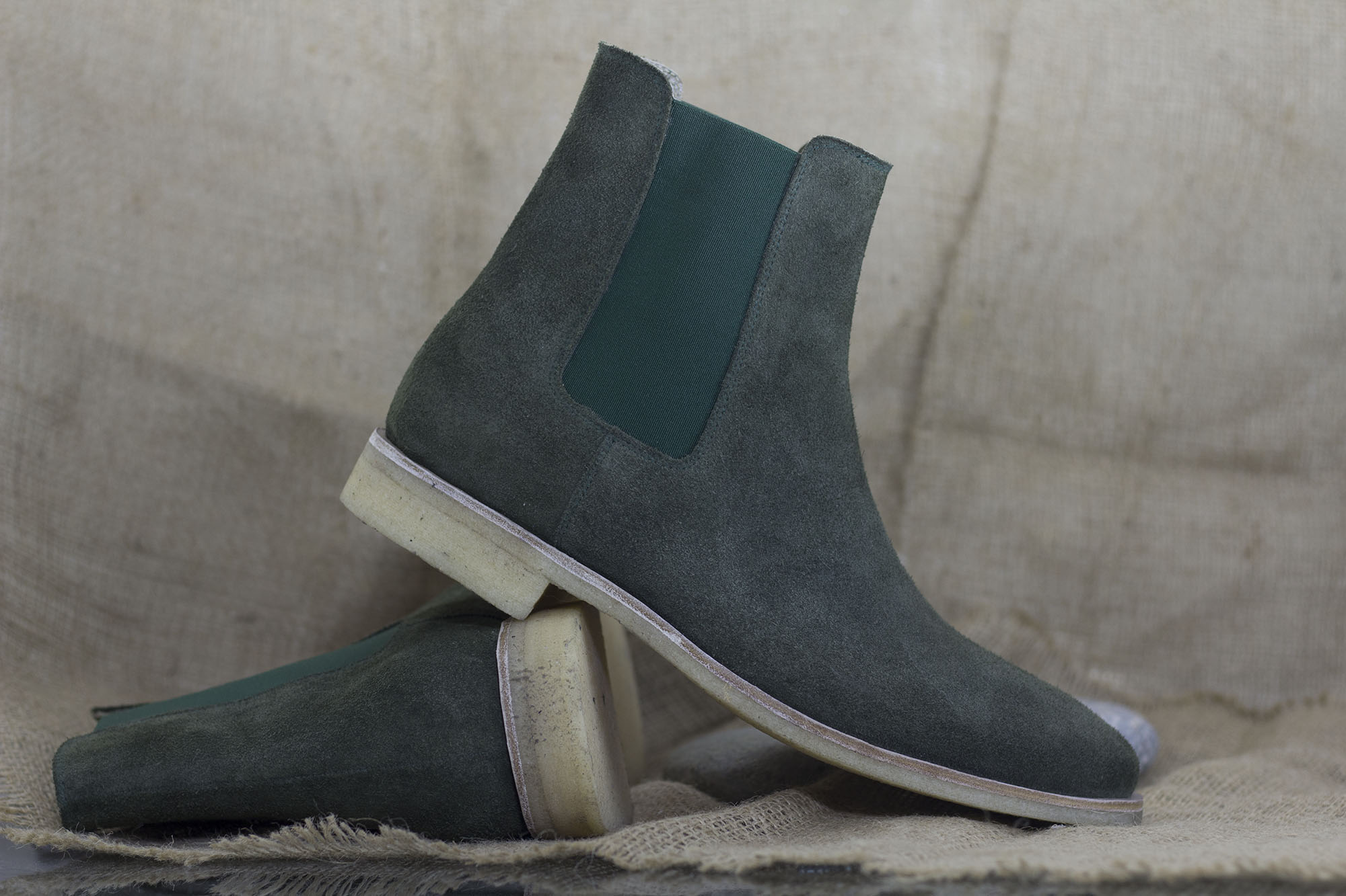 Handmade Olive Green Suede Chelsea Ankle Boots For Men's