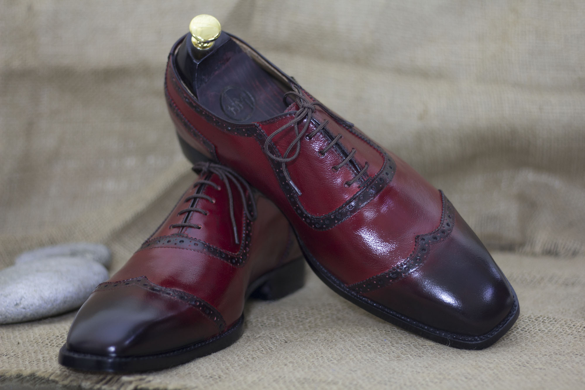 Two Tone Burgundy Lace Up Style Men's Shoes