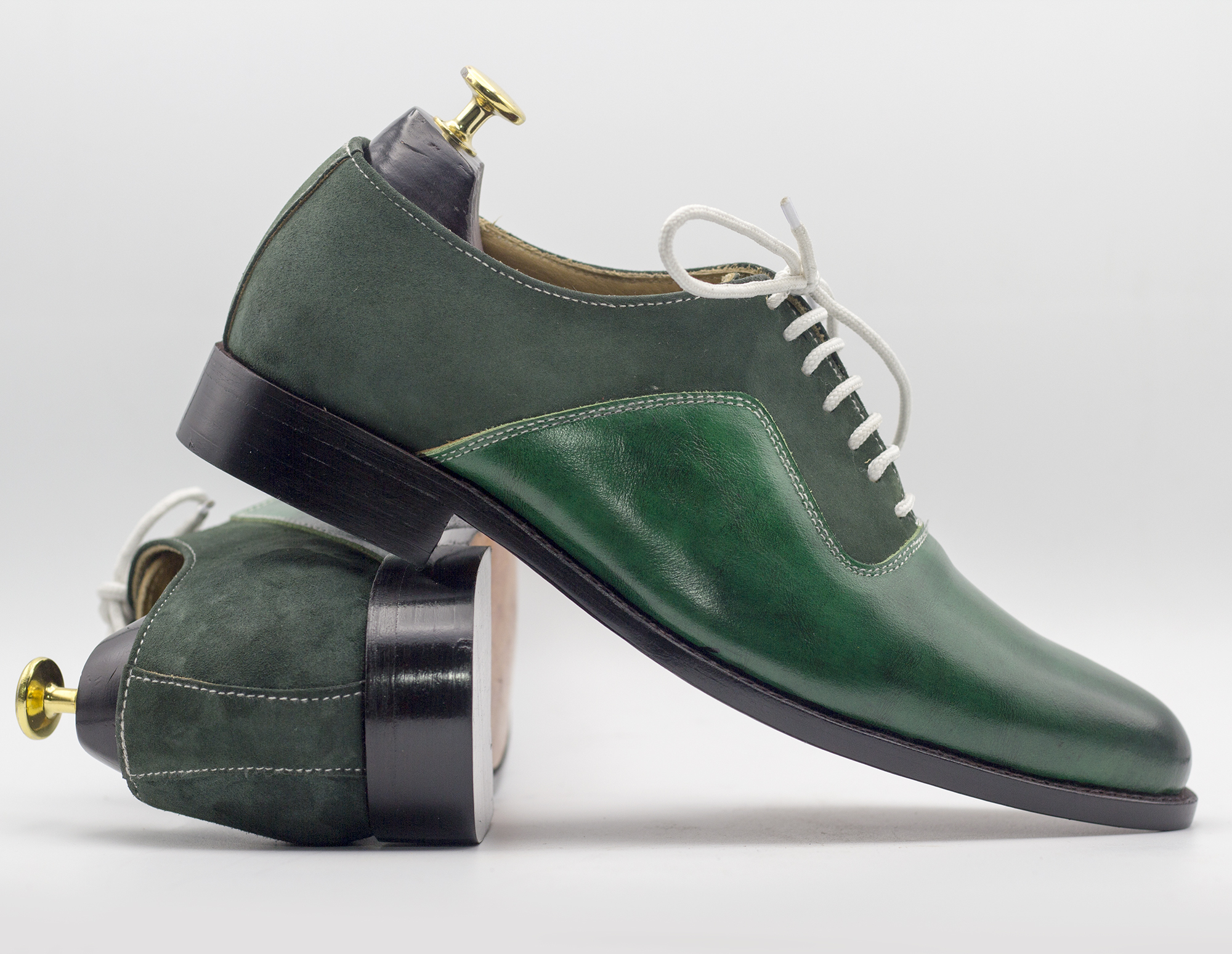 Handmade Green Leather Suede Lace Up Shoes For Men's