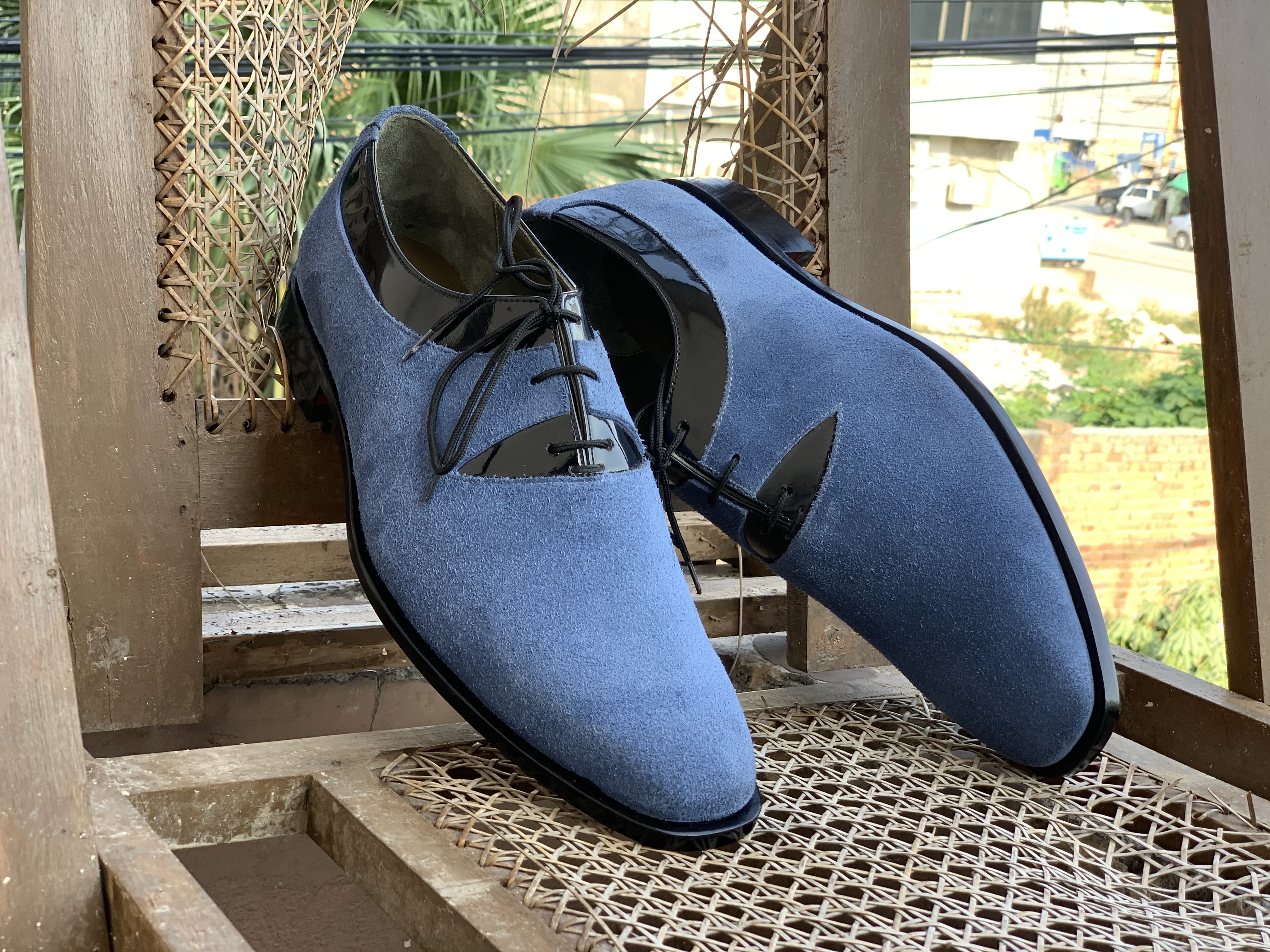 Men's Blue Black Slip On Lace Up Leather Suede Shoes