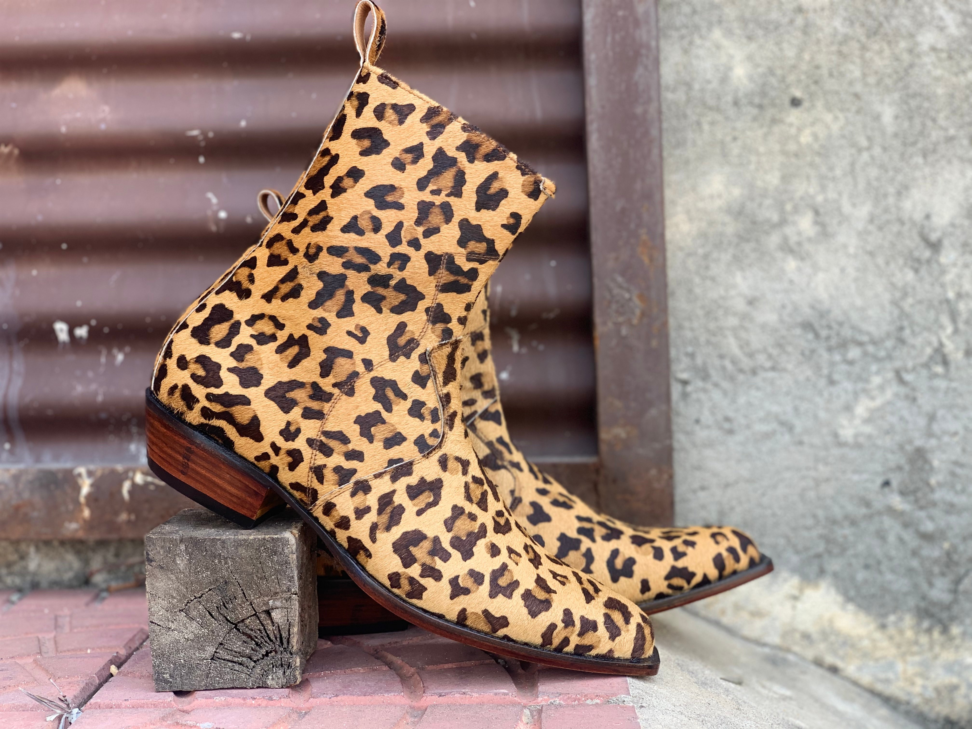 Men's Handmade Millenials Leopard Print Calf Skin Hair Boot