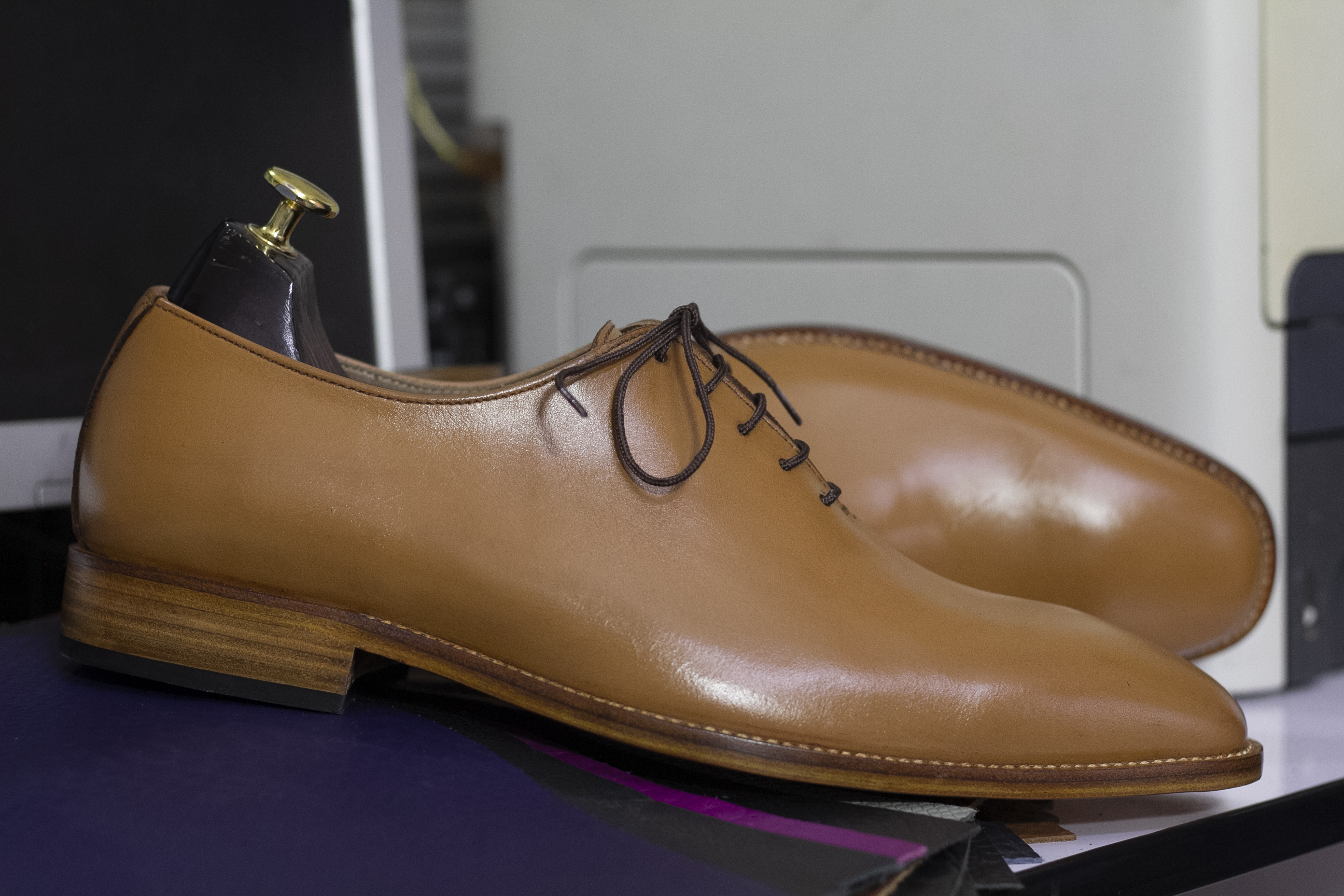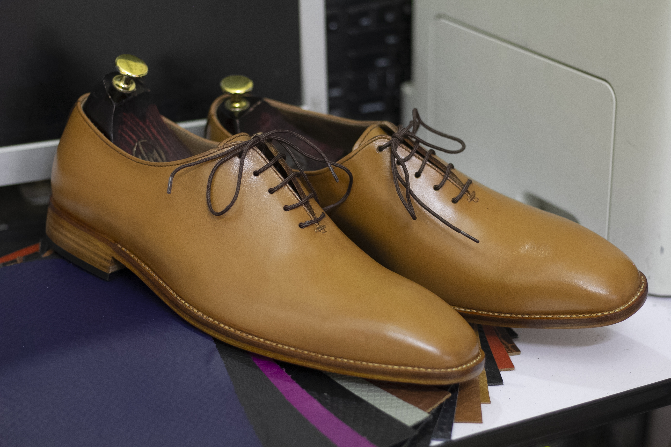 Men's Whole Cut Lace Up Tan Leather Shoes