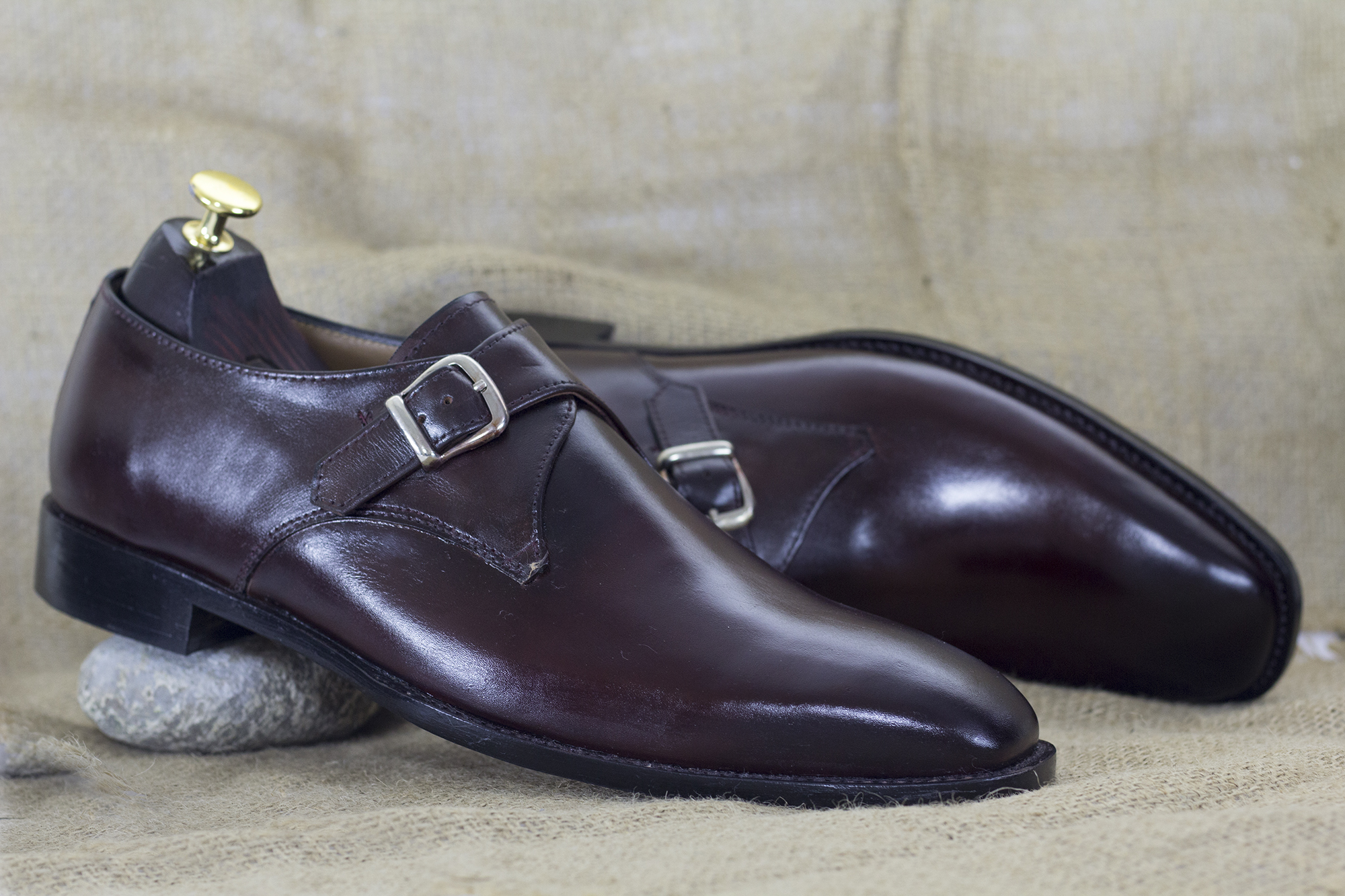 New Dark Brown Whole Cut Monk Shoes, Men's Party Shoes