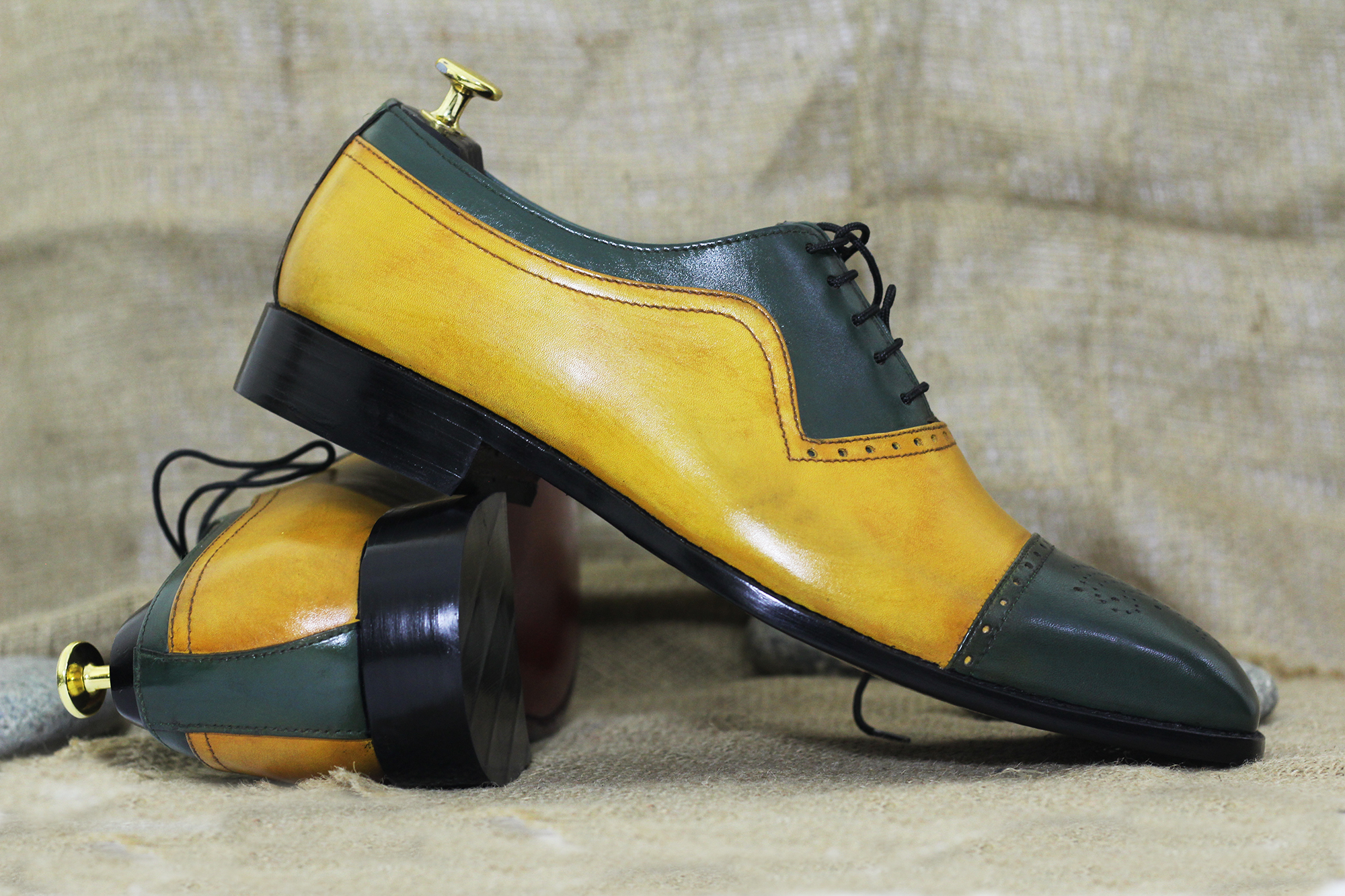 Handmade Pure Leather Shoes, Cap Toe Lace Up Style Shoes For Men's