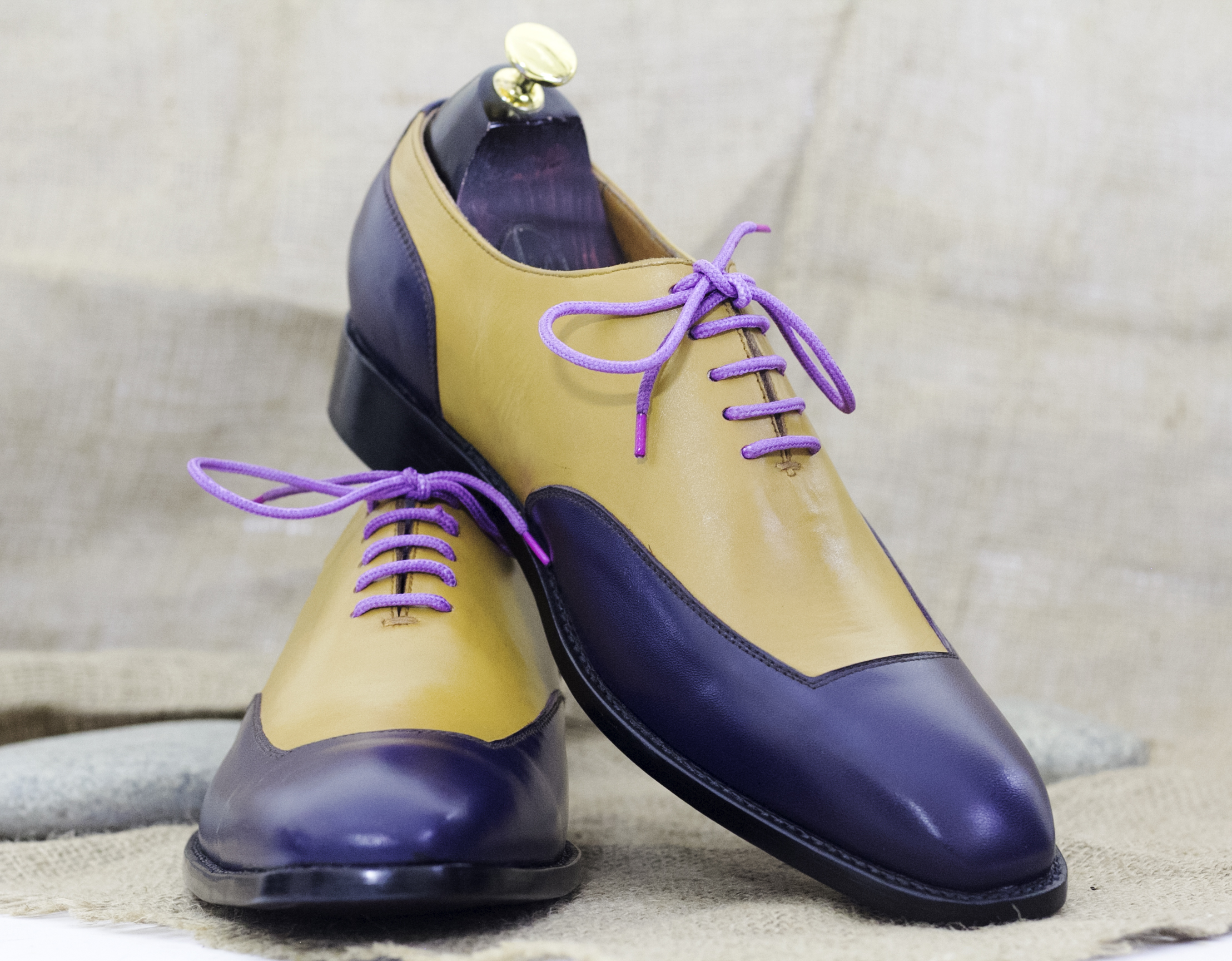 Handmade Two Tone Stylish Lace Up Pure Men's Leather Shoes