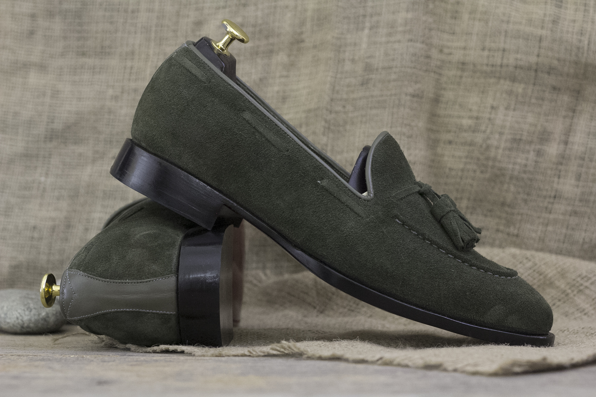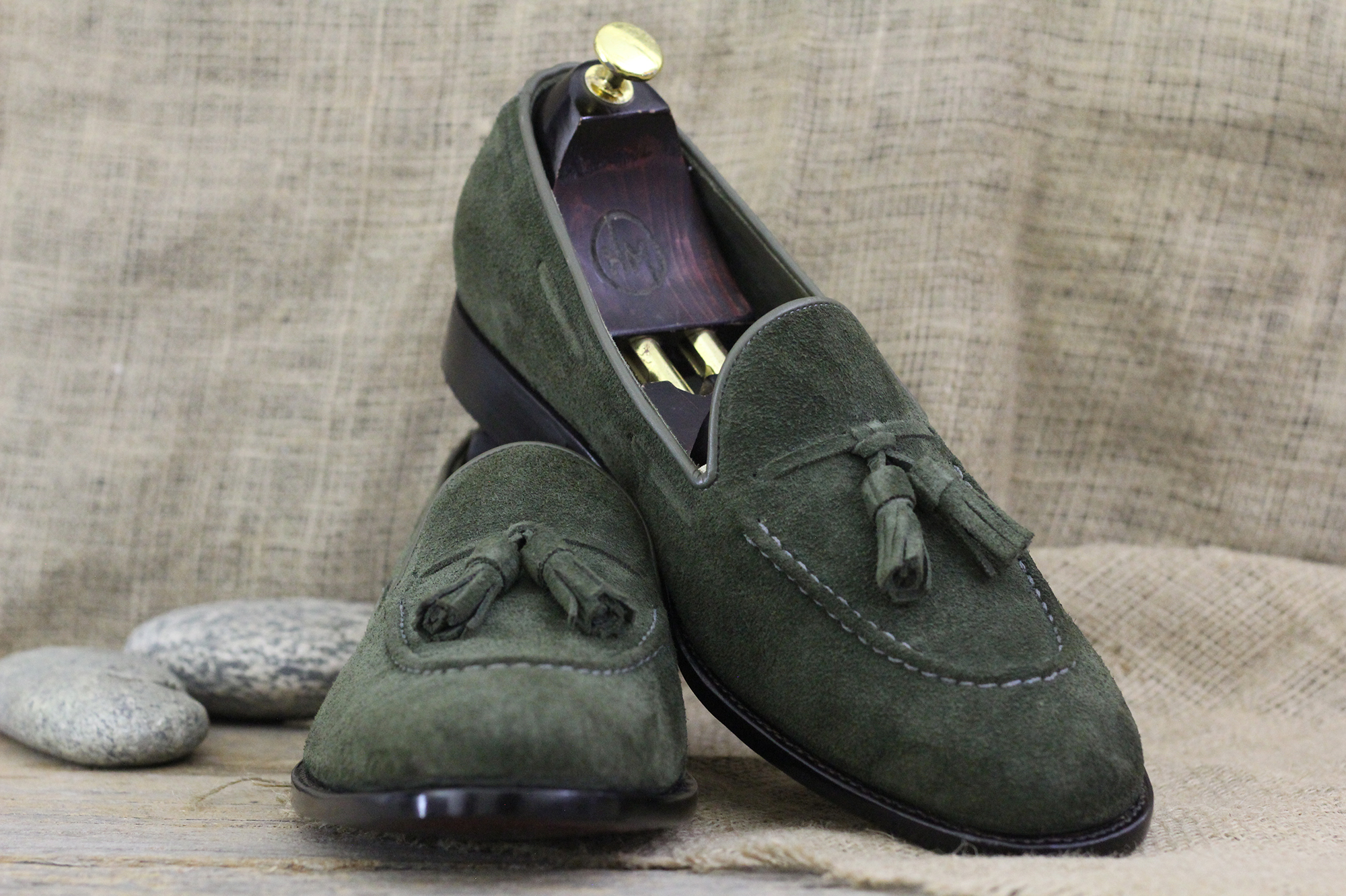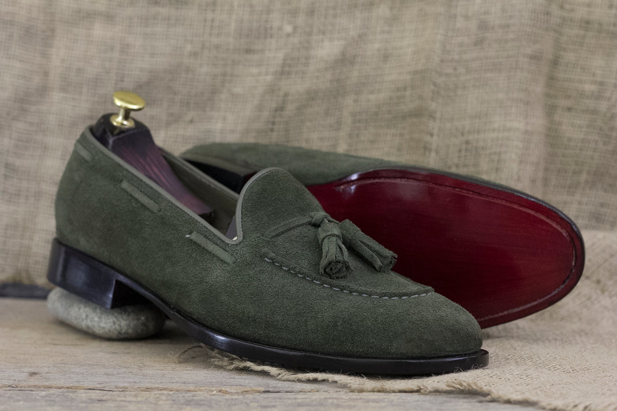 Olive Green Suede Loafer Slip On Men's Shoes