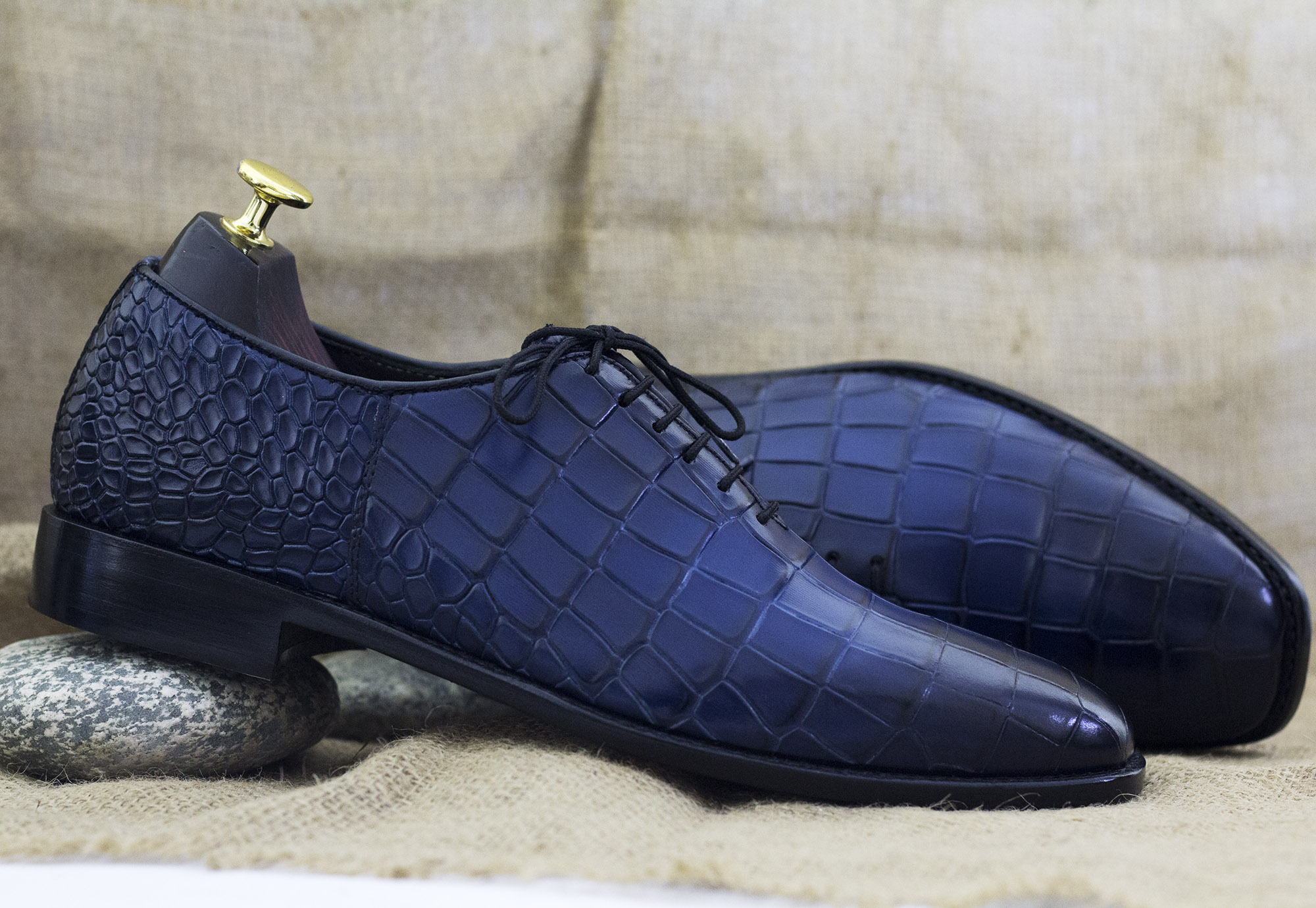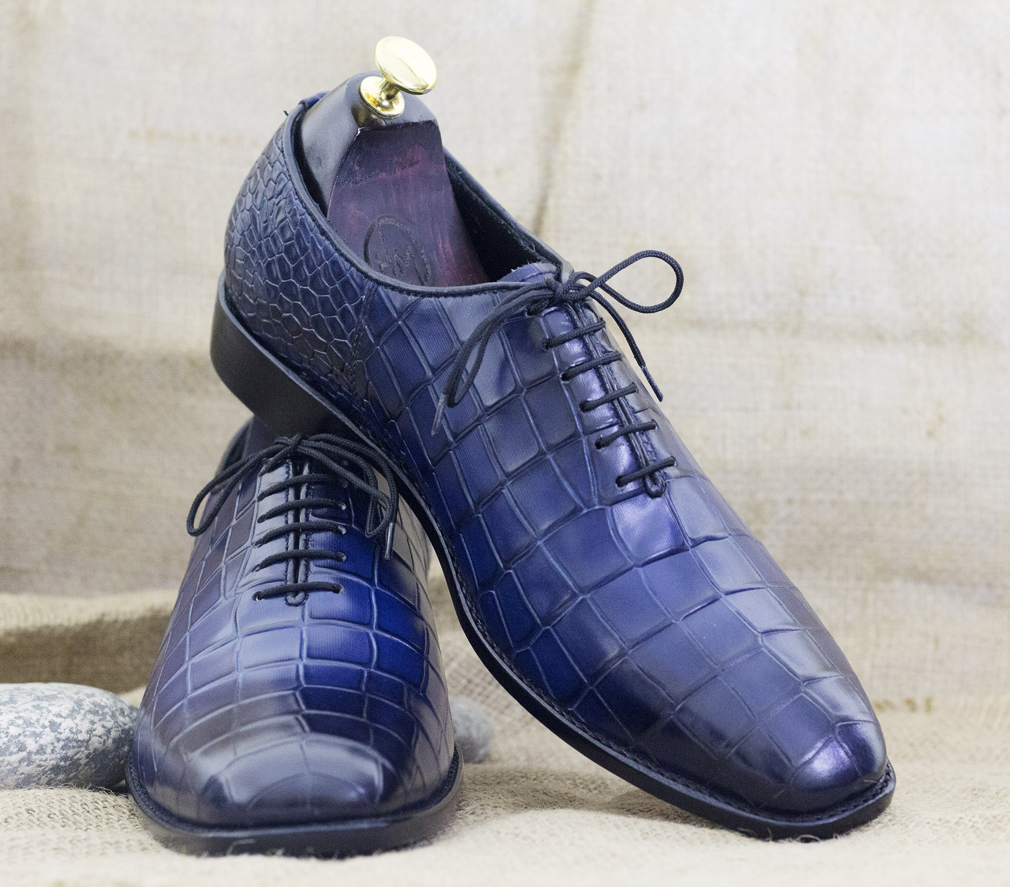 Men' Blue Lace Up Whole Cut Alligator Texture Shoes