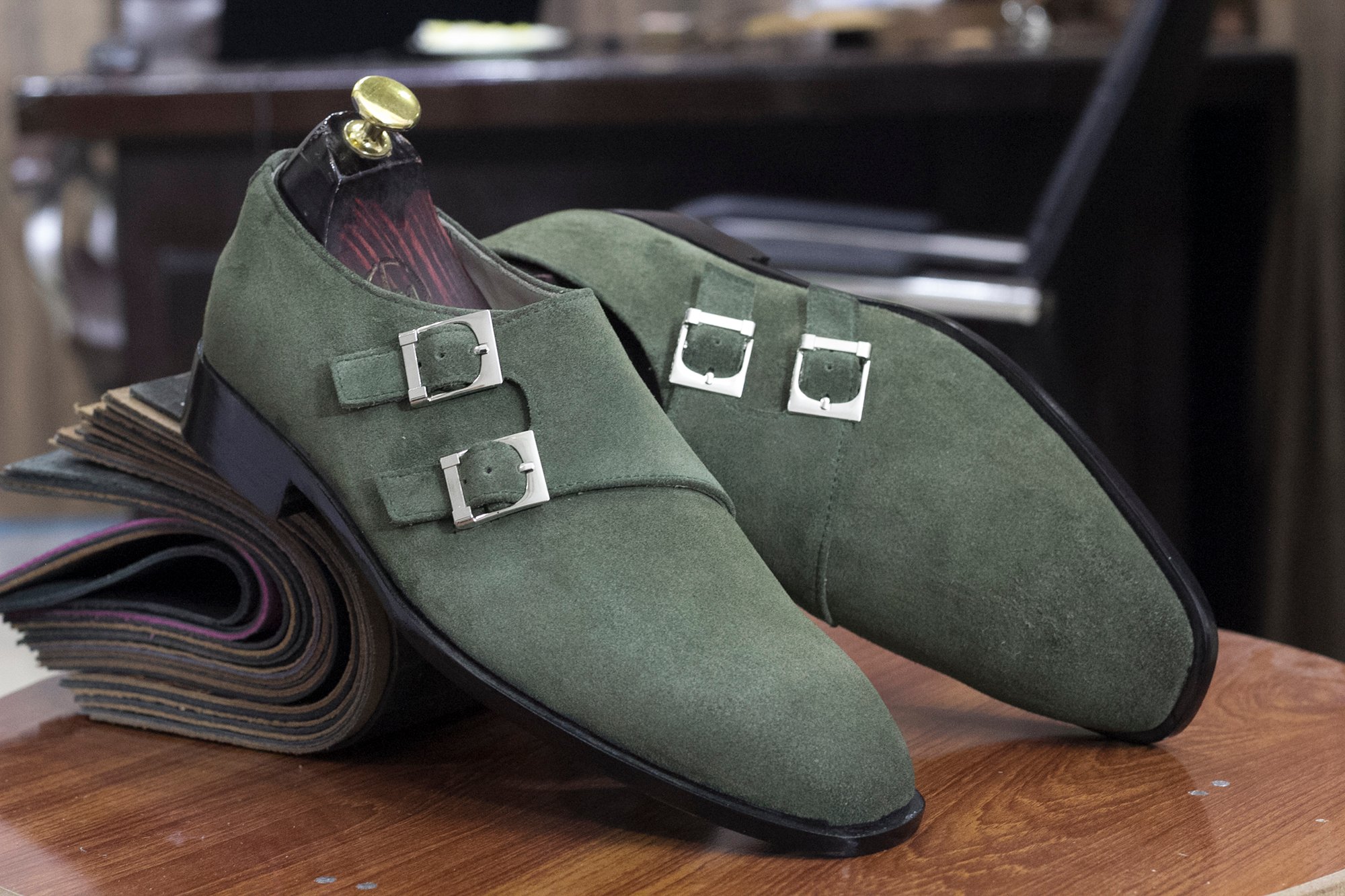 Double Monk Shoes, Suede Men,s Shoes, Handmade Designer Shoes