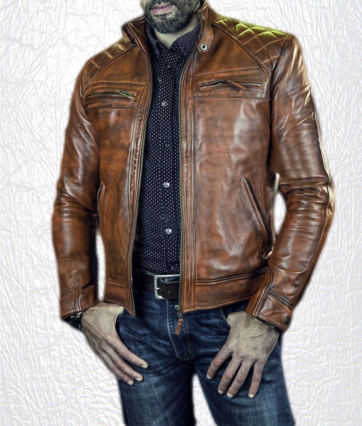 Men's Distressed Brown Leather Slim fit Jacket , Racers Club Biker Jacket