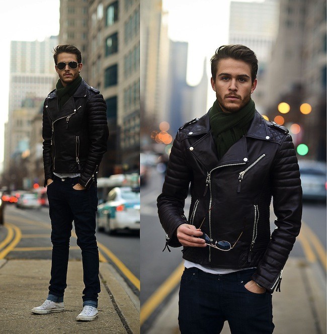 Bespoke Men's Biker Leather Jacket,Fashion Black Motorcycle Jacket, Zipper Jacket
