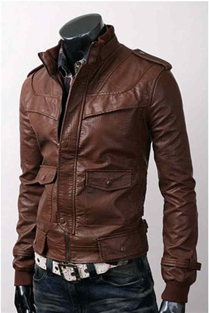 Men's Slim Fit Handmade Korean Style Brown Pocket Fashion Leather Jacket