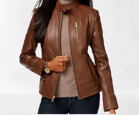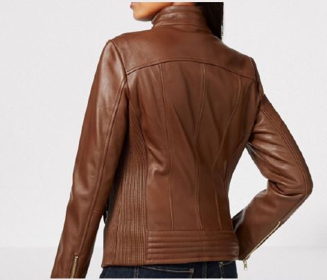 Women Brown Leather Biker Fashion Jacket, Street Style Fashion Jacket