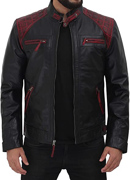 Men Black and Red Leather Fashion Jacket, Biker Jackets, Leather Apparel for Biker Racers