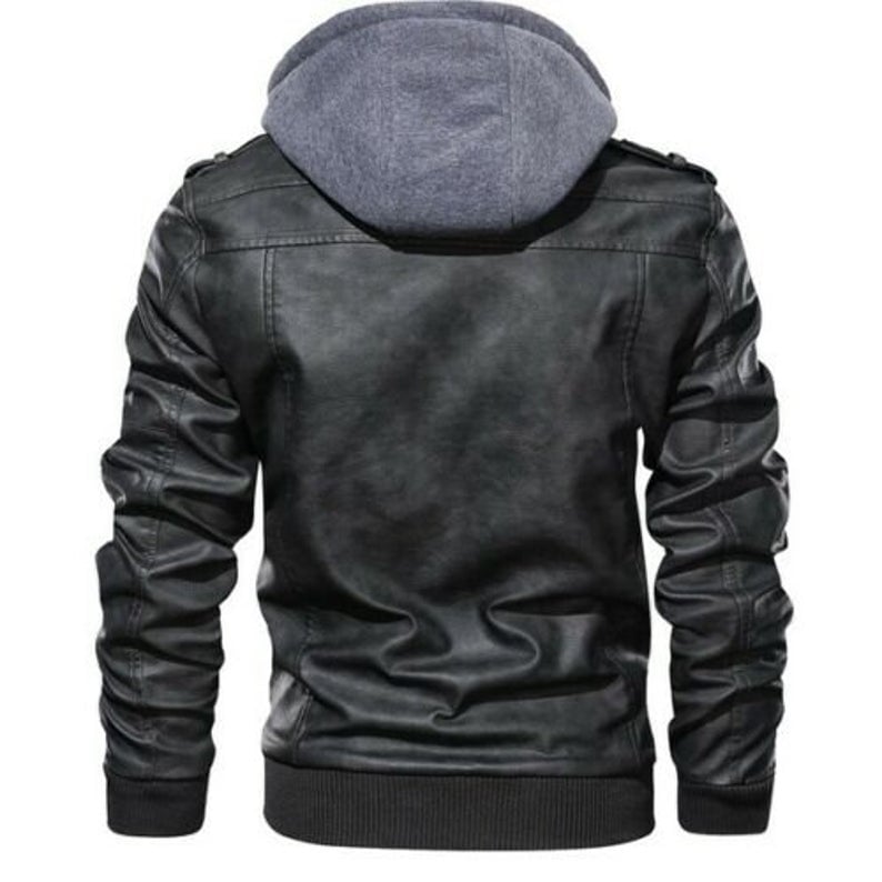 Men's Biker Motorcycle Leather Jacket Hoodie Slim Fit Hooded Coat Jackets Gray