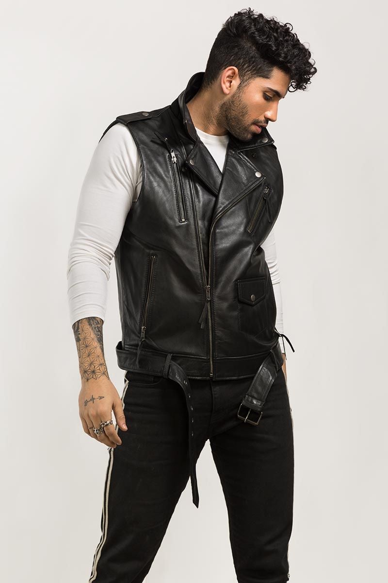 Men Black Leather Sleeveless Motorcycle Biker Jacket, Men Stylish Biker Jacket