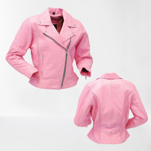 Women Pink Leather Slim fit Biker Fashion Jacket, Street Style Jackets