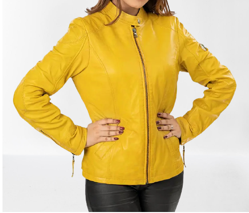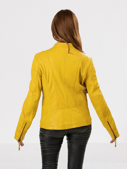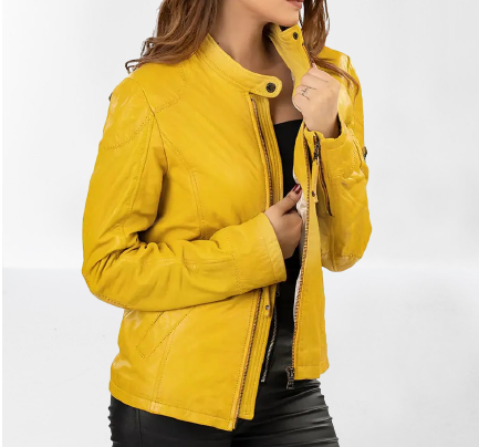 Women Yellow Leather Biker Slim fit Fashion Jacket, School Sports Jacket