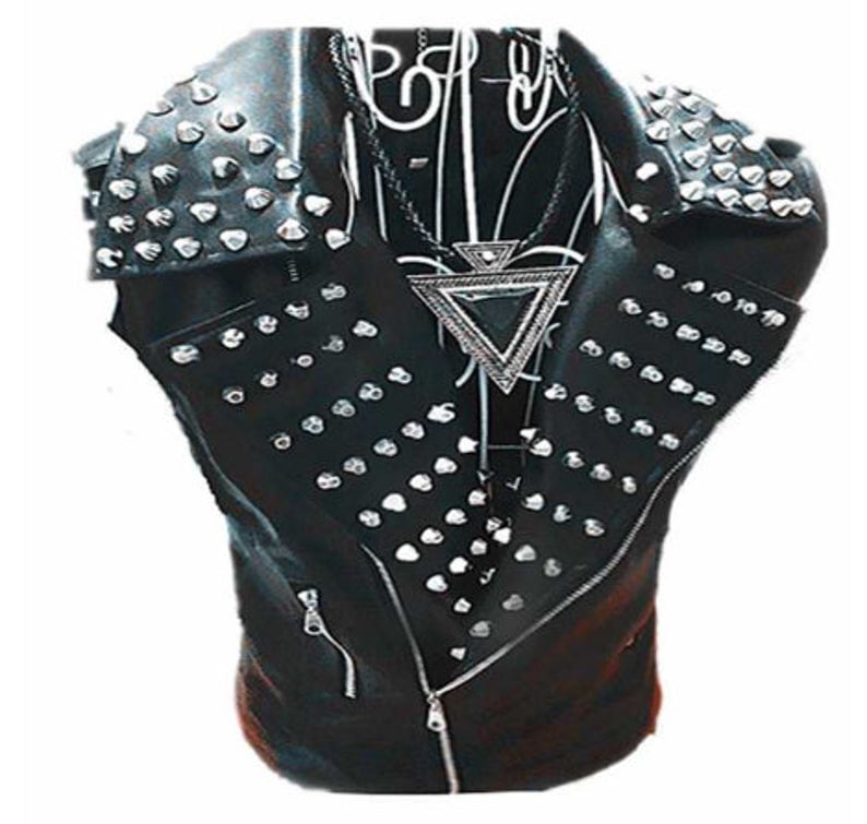 Handmade Men's Black Studded Vest Leather Jacket, Vest Style Sleeveless Leather Jacket