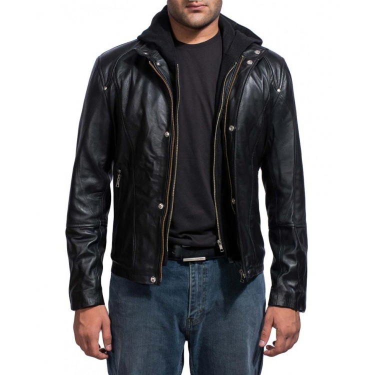 Brick Mansions Damien Collier Leather Jacket, Men Hooded Leather Jacket
