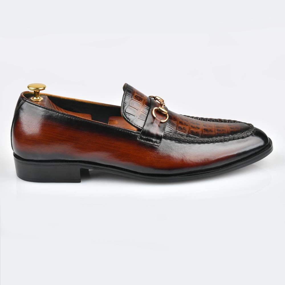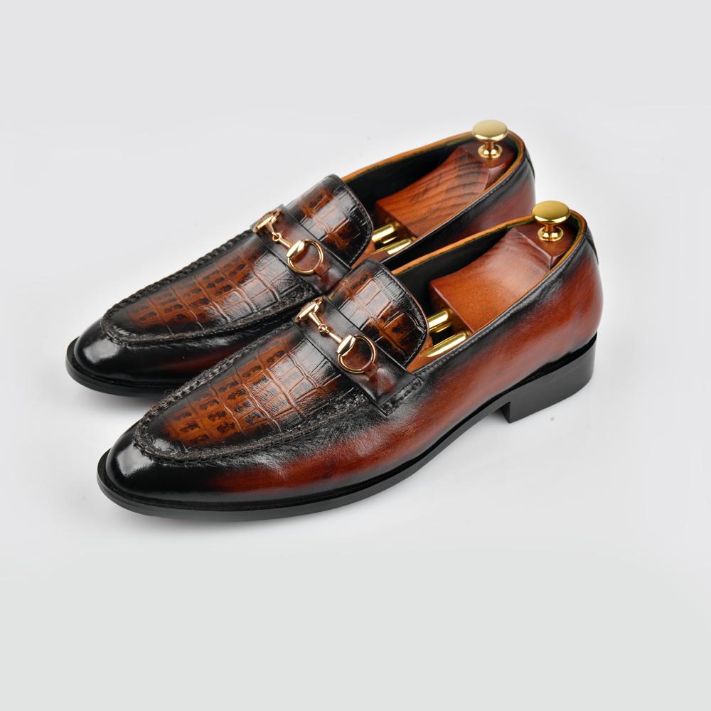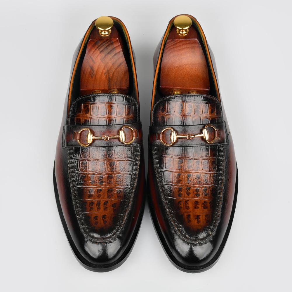 Handmade Brown Crocodile Pattern Leather Moccasin Shoes, Formal Loafers