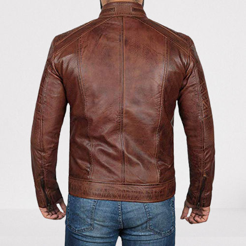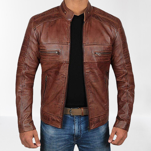 Men Brown Leather Biker Jacket, Classic Brown Fashion Leather Jacket