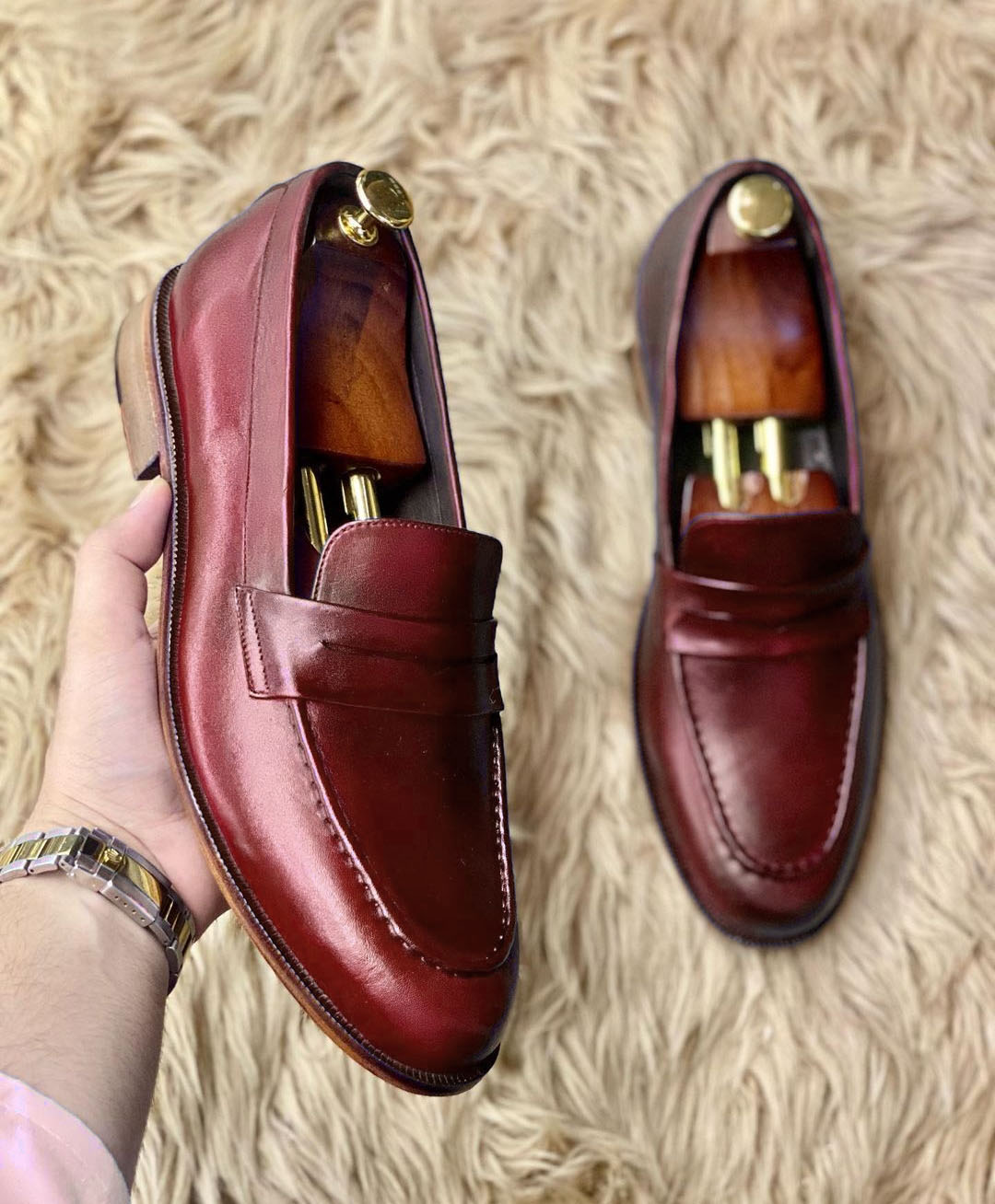 Handmade Stylish Party Shoes ,Burgundy Penny Loafer Slip On Moccasin Shoes For Men's