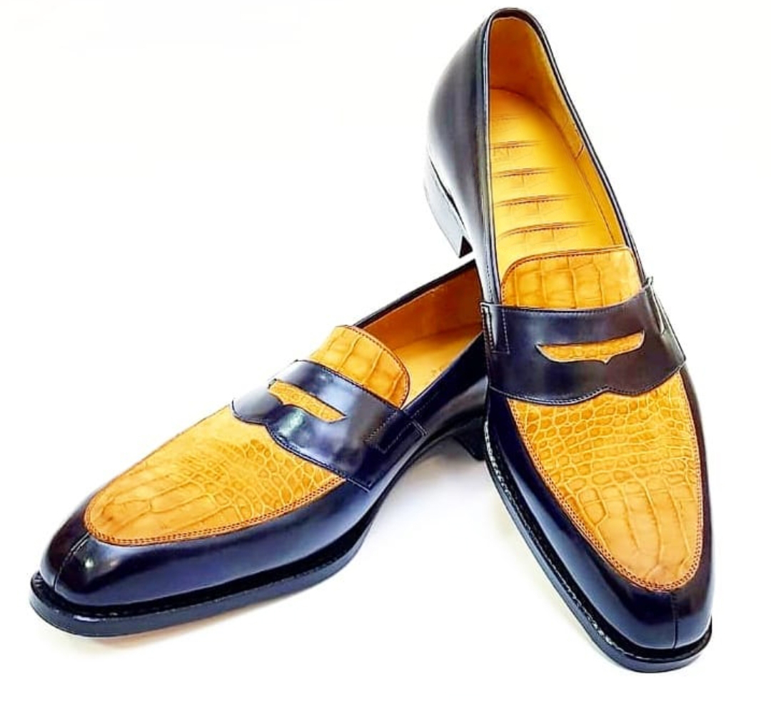 Handmade Two Tone Penny Loafer Square Toe, Slip On Moccasin Shoes