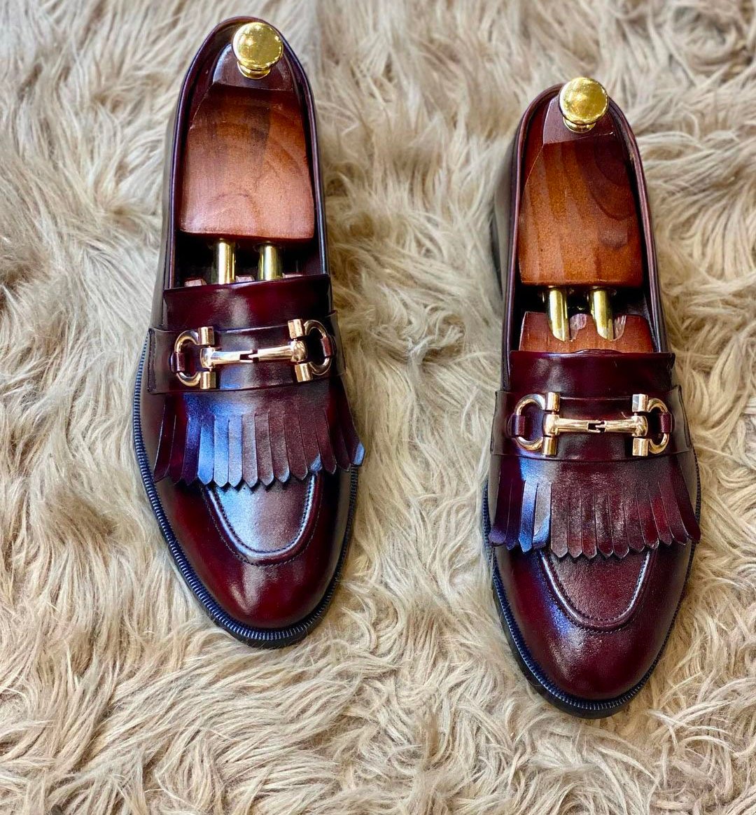 Men's Fringe Horsebit , Loafer Shoes, Handmade Cordovan Leather Shoes