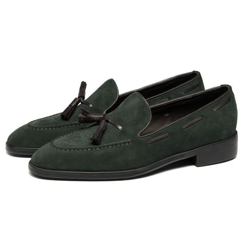 Apron Toe Handmade Premium Leather Tussle Loafer Slip On Men's Green Shoes