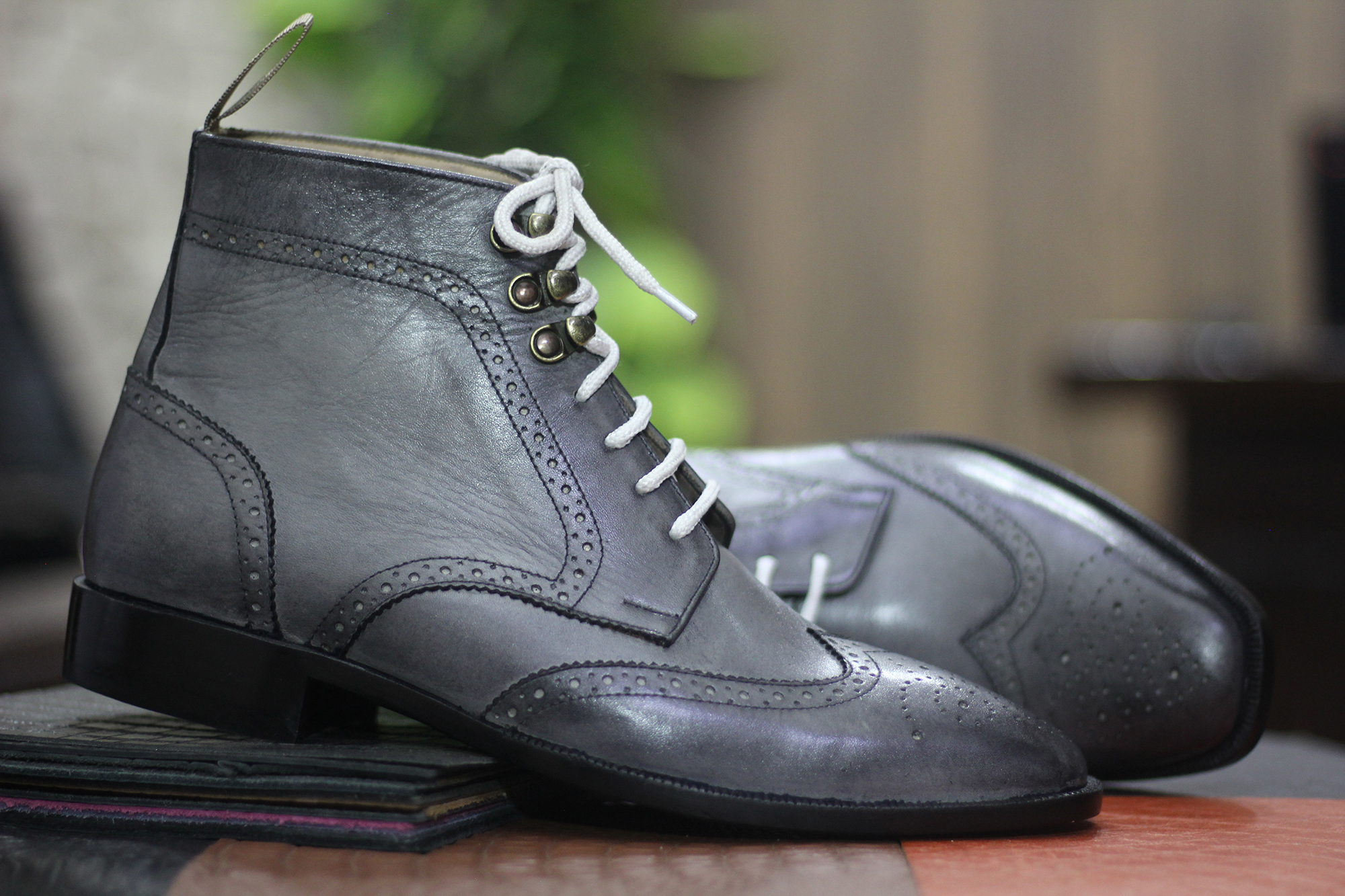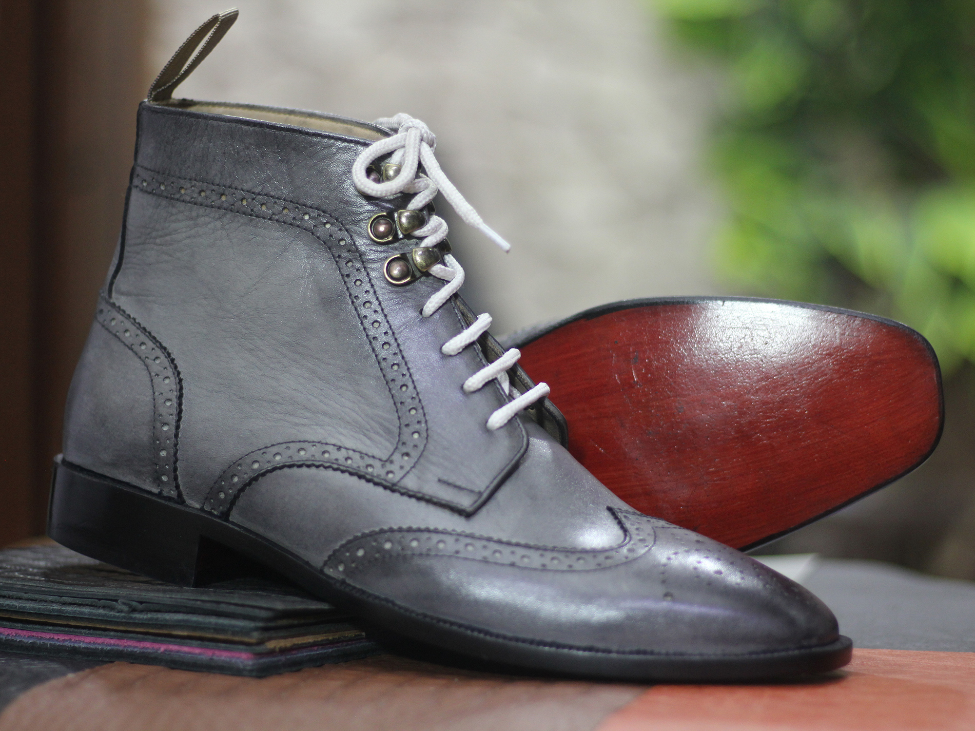 Ankle High Gray Boots, Wing Tip Boots For Men's Handmade Boot