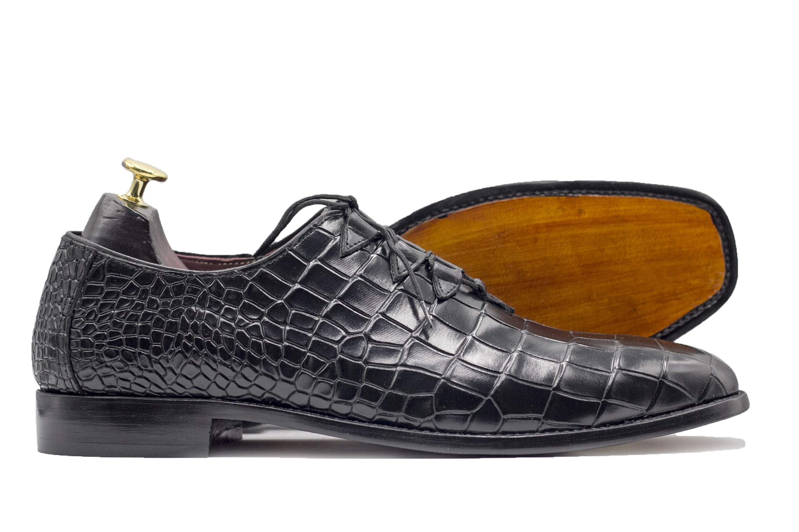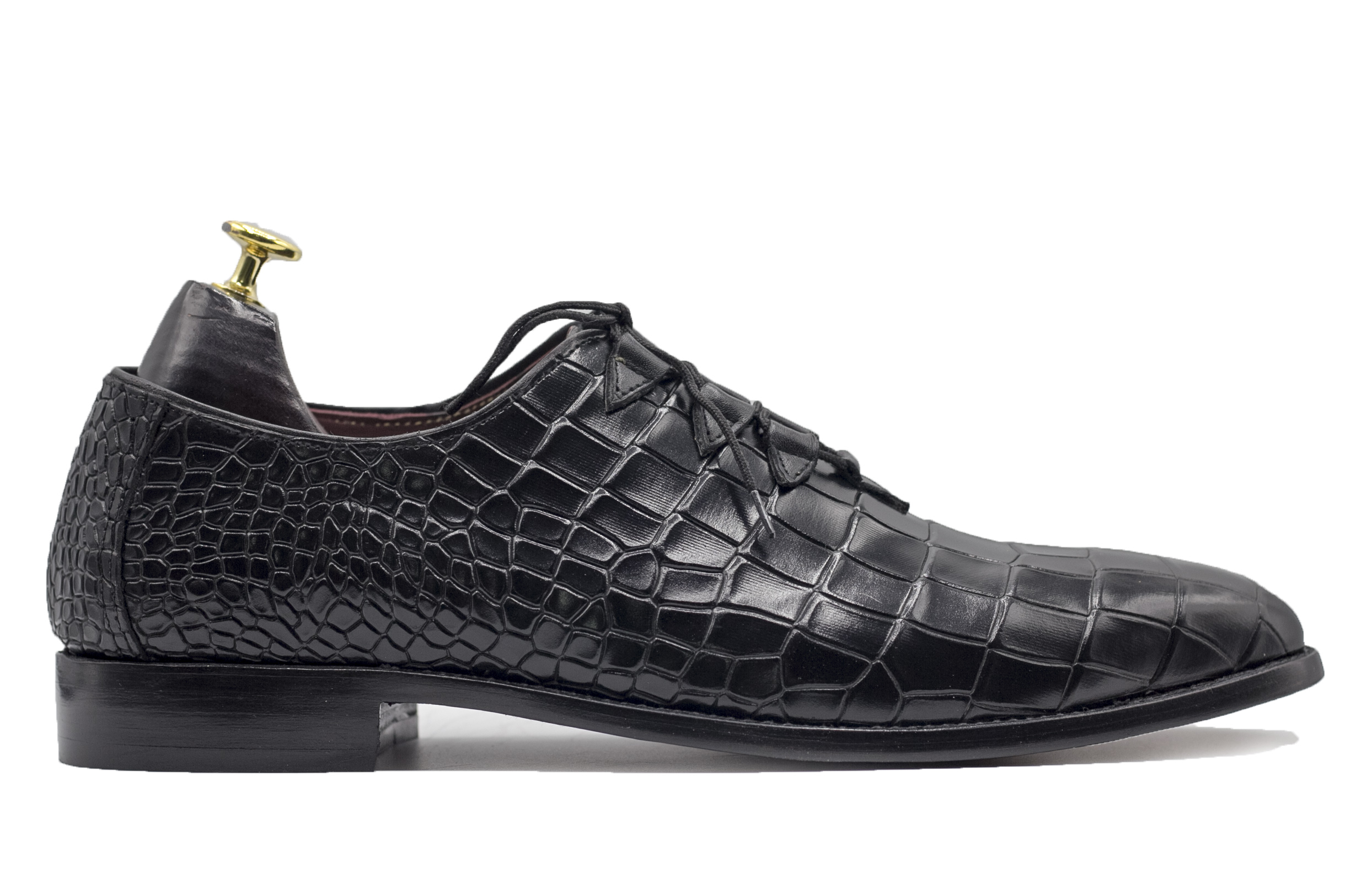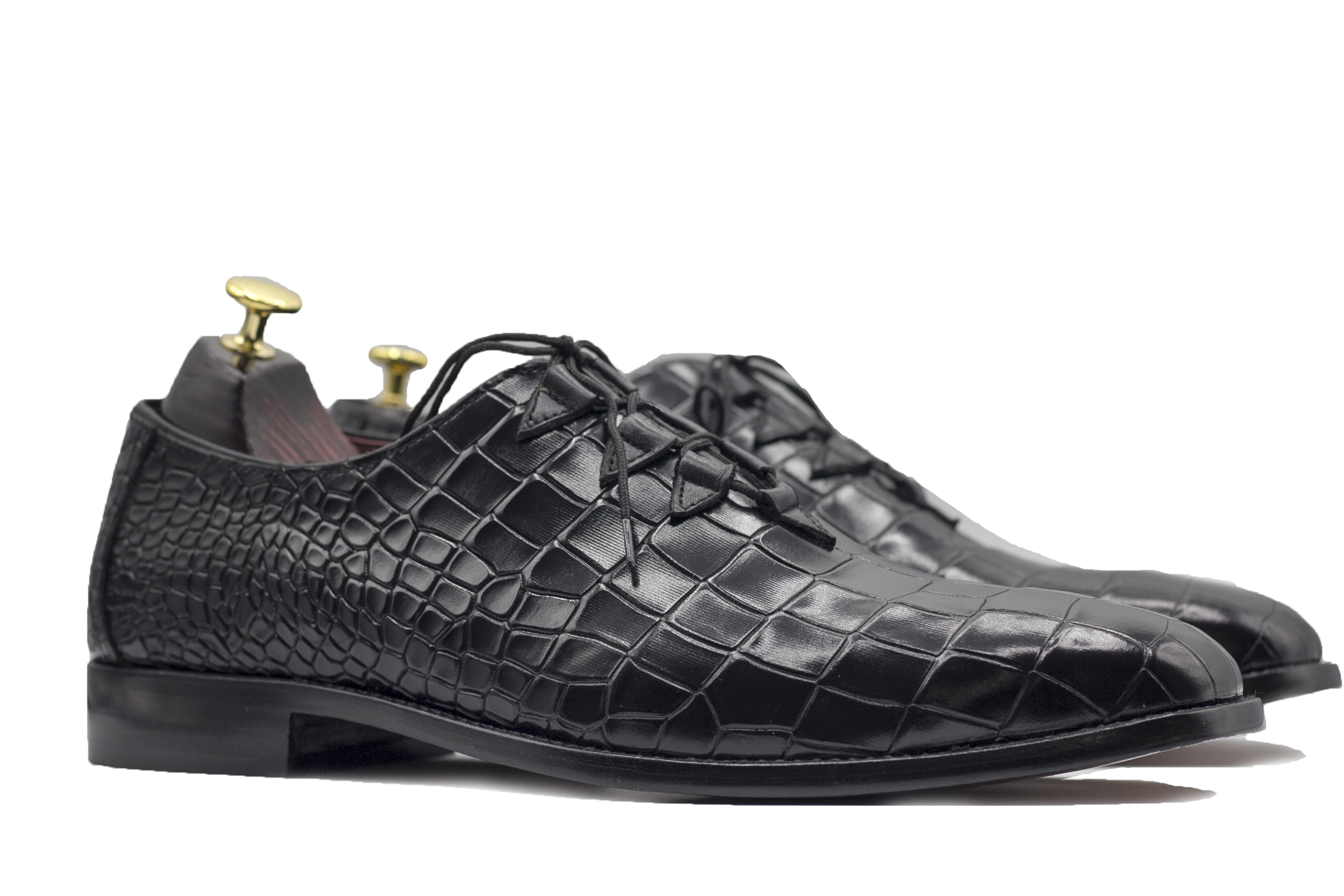 Alligator Texture Pure Black Leather Lace Up Shoes For Men's