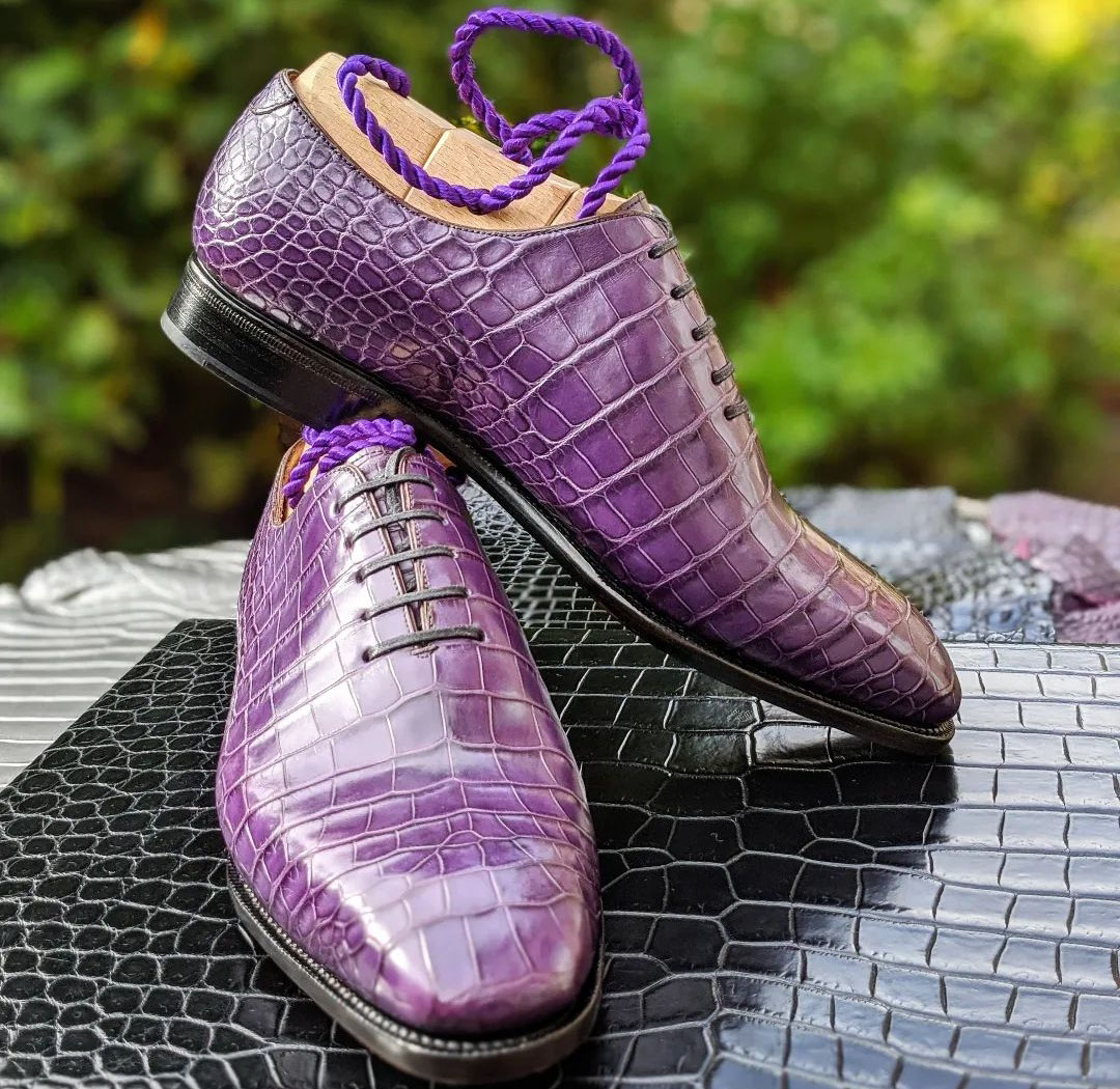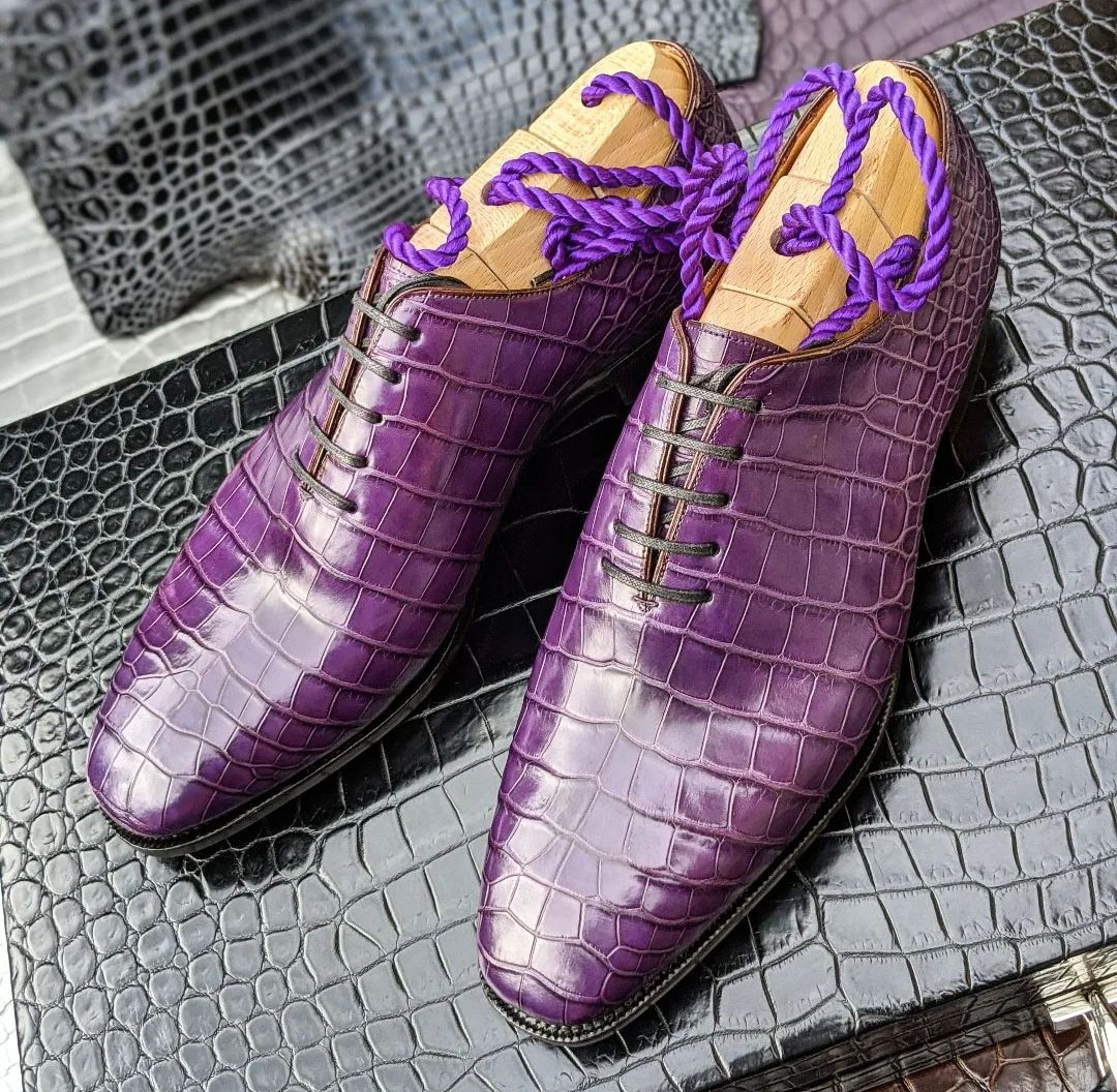 Handmade Purple Alligator Texture Shoes, Spectator Lace Up Shoes For Men's