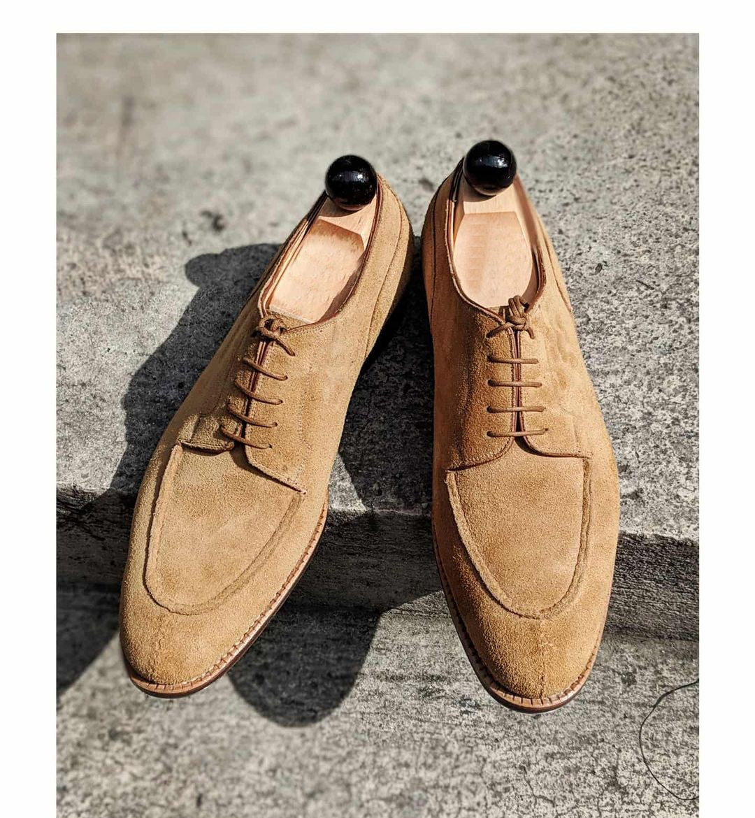 Men's Beige Suede Split Toe Lace Up Handmade Slip On Shoes
