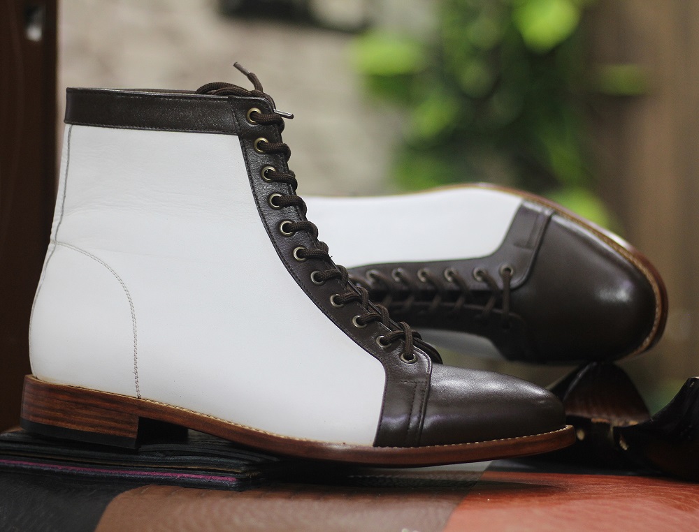 Two Tone Men's Ankle High Criss Cross Formal Wear Leather Boot